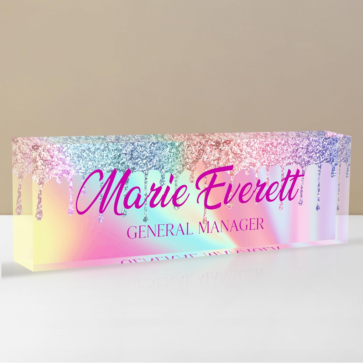 Personalized Name Plate for Desk, Custom Desk Name Plate, Acrylic Name Plate Office Desk Accessories, Personalized Office Gifts for Coworkers Teachers, Employee Appreciation Gifts (B-Colored Crystal)
