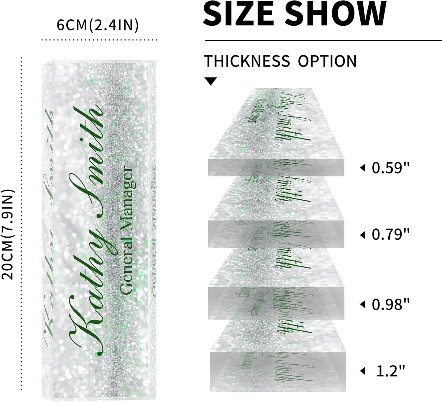 - 【Premium Acrylic Materials】:We use high-quality transparent and environmentally friendly acrylic blocks to make custom name plates, and use the most advanced HD printing technology and super strong adhesives to make the name plate content clear and never fall off. And because of its sturdy and durable characteristics, the acrylic name plates can become a permanent desk decoration.