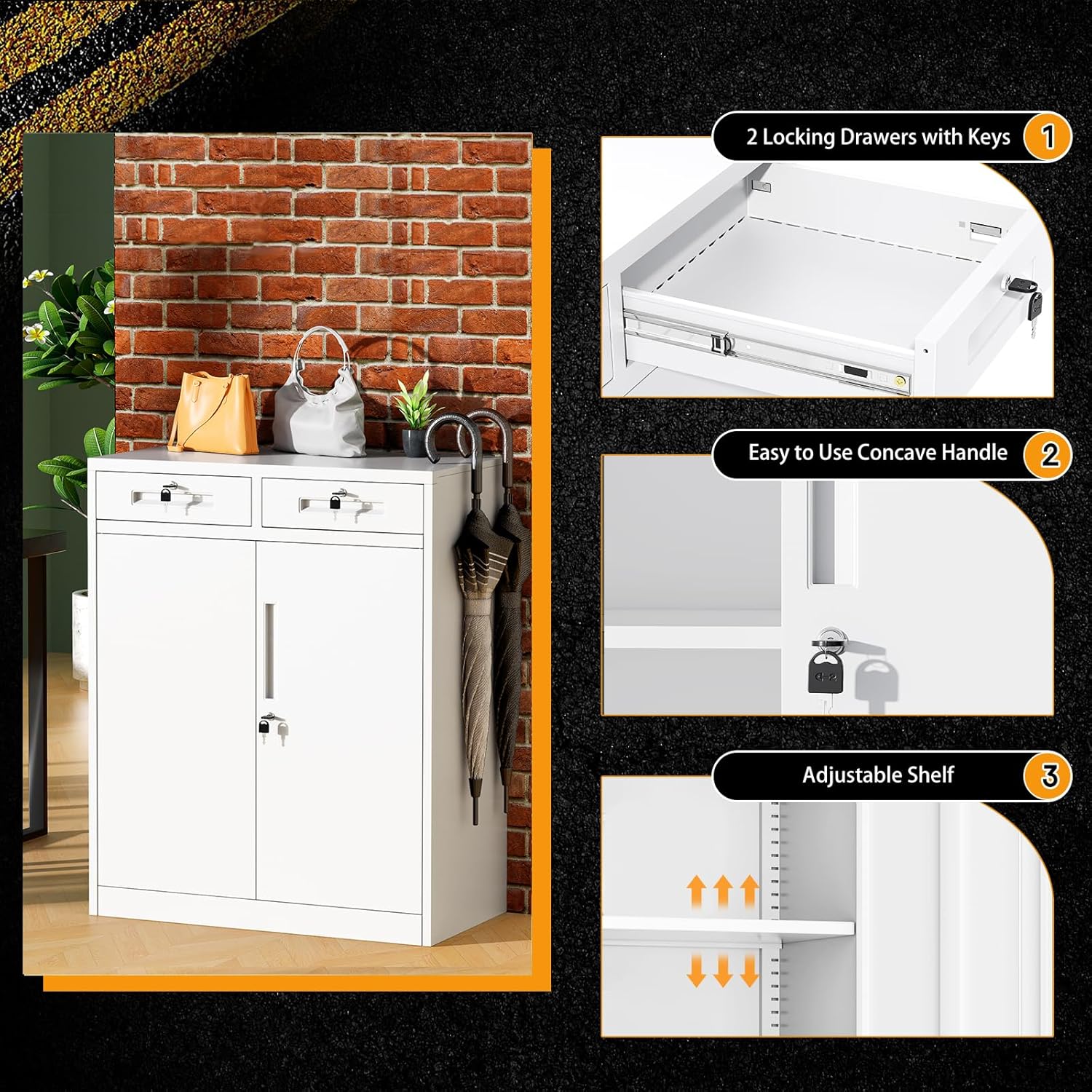 - [π¨π£ππ₯ππππ ππ’ππππ‘π π¦π¬π¦π§ππ ] -- Greenvelly metal storage cabinet adopts a new upgraded and safer three-point interlocking system. Multiple locked areas such as two drawers can store different tools or files. The lockable metal storage cabinet provides higher security for your important items and documents, making it perfect for use in offices, garages, and schools.
