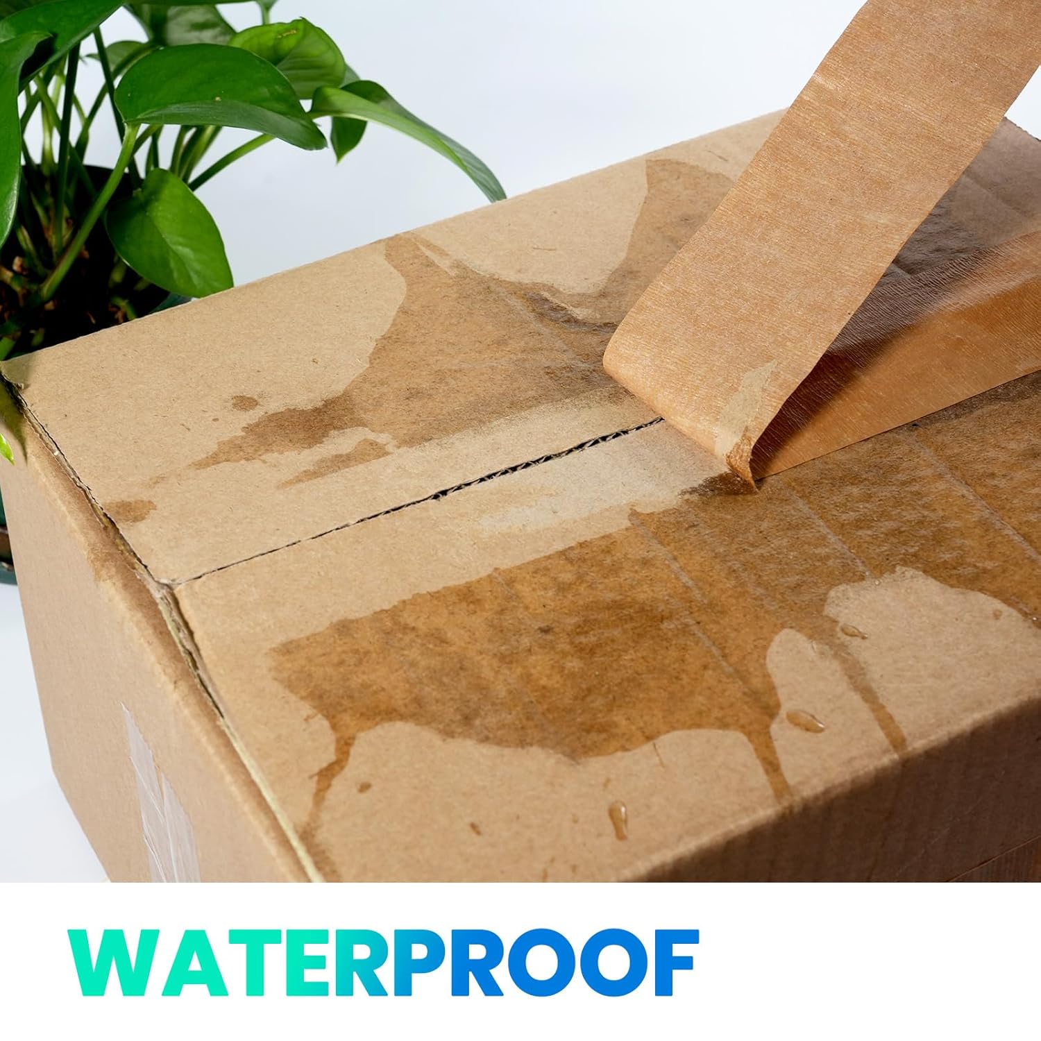 ADHES Heavy Duty Kraft Paper Tape, 7.5mil, 2 Inch x 55 Yards x 12 Rolls, Biodegradable Paper Packing Tape Writable & Uncoated Brown Packing Tape for Shipping, Moving, Sealing