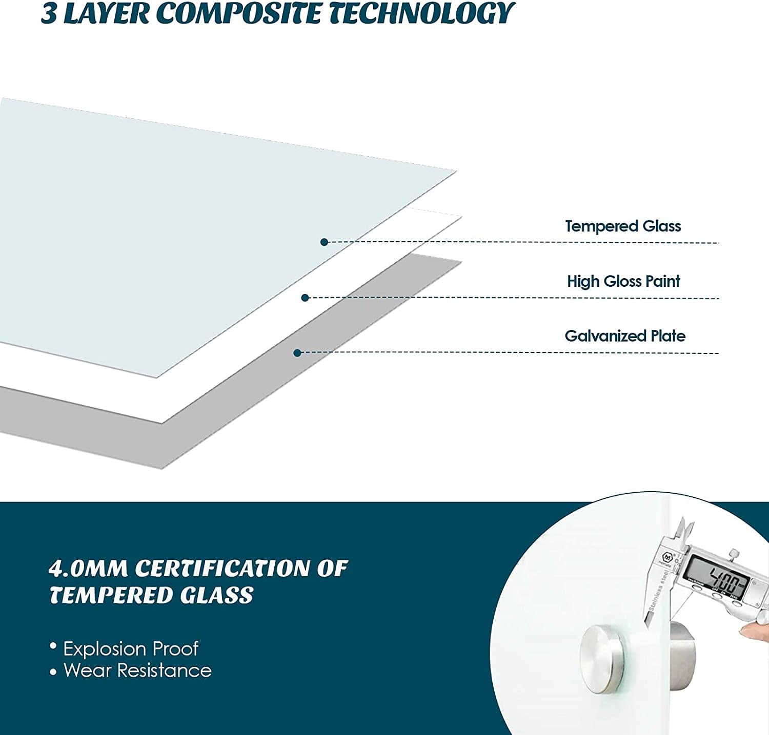 - 【Durable】The board is made from a tempered decorative glass that is up to ten times stronger than regular glass. It can withstand the impact from a golf ball, hammer, so your investment is safe in this board.