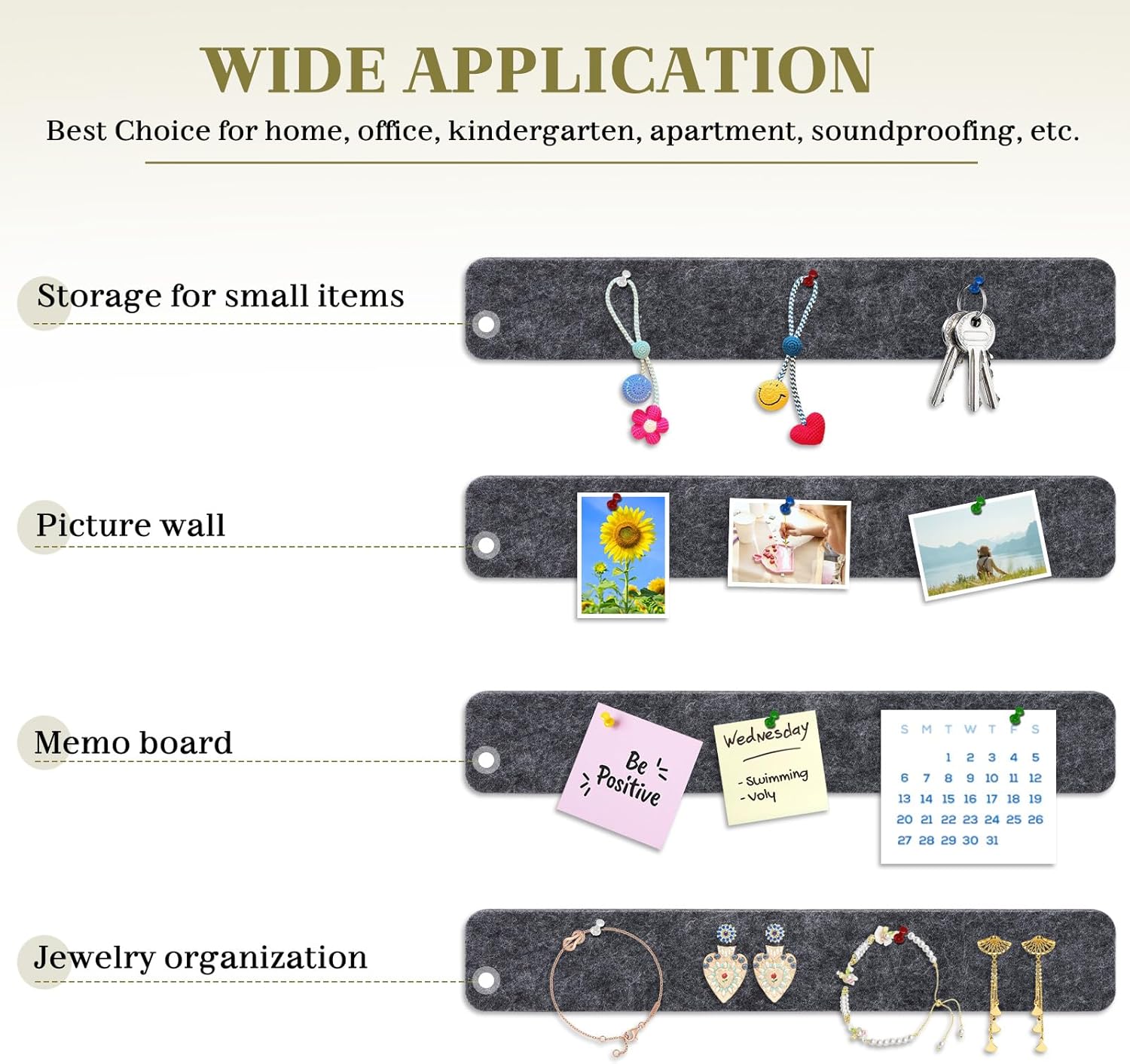 - High-density and Durable Felt: the felt cork board strips are made from high density felt, offering a classic look that's both functional and stylish, providing a soft yet durable surface that securely holds pins and adds a modern touch to your space.
