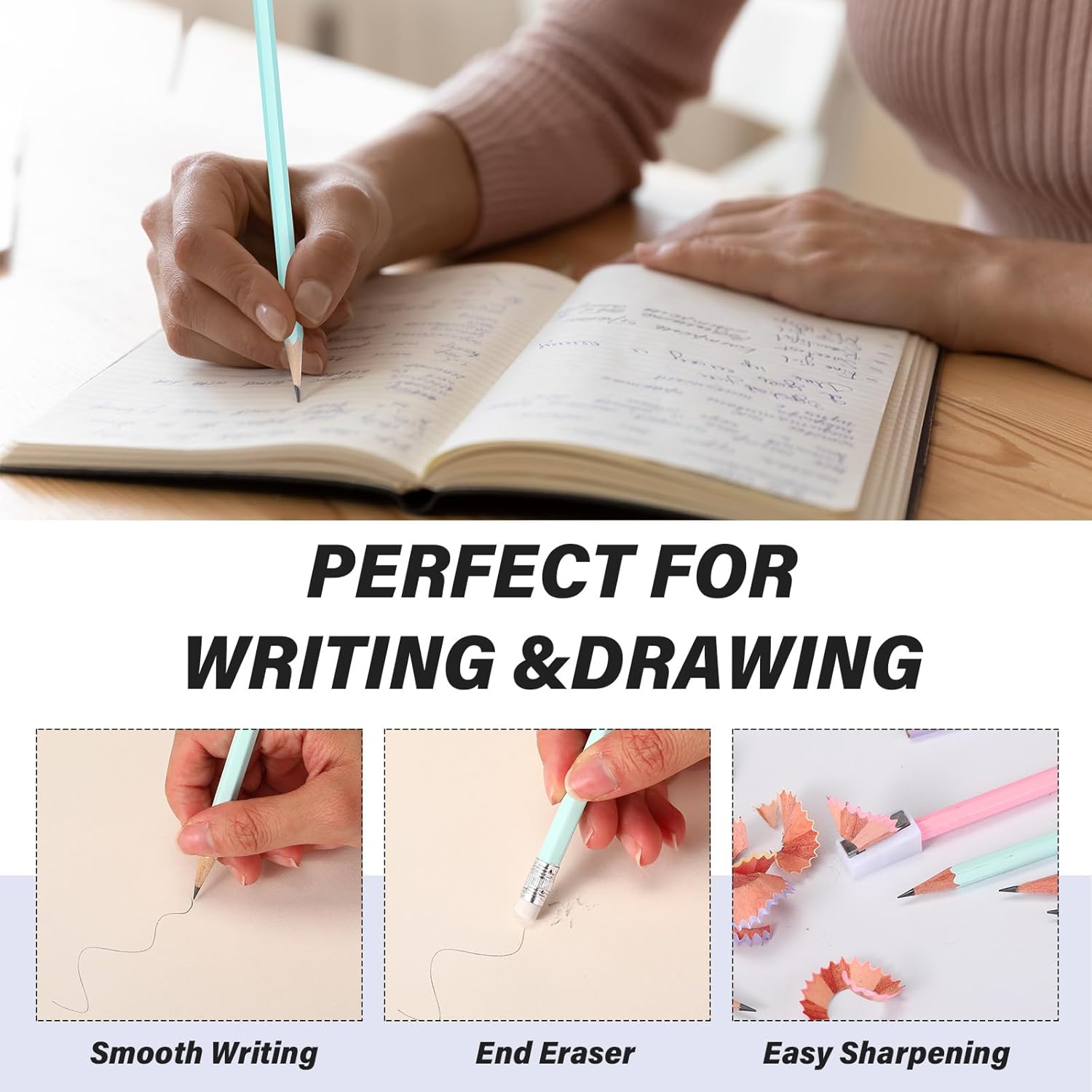 - Complete Your Writing Quest: dive into a writing journey with 60 pieces of quality wood cased pencils; Each plentifully packed kit comes with barrel pencils in 6 macaron colors, capped with white erasers, wrapped in silver metal, ensuring your daily study and drawing needs; It also serves as an ideal supply that you can delightfully share with classmates and friends