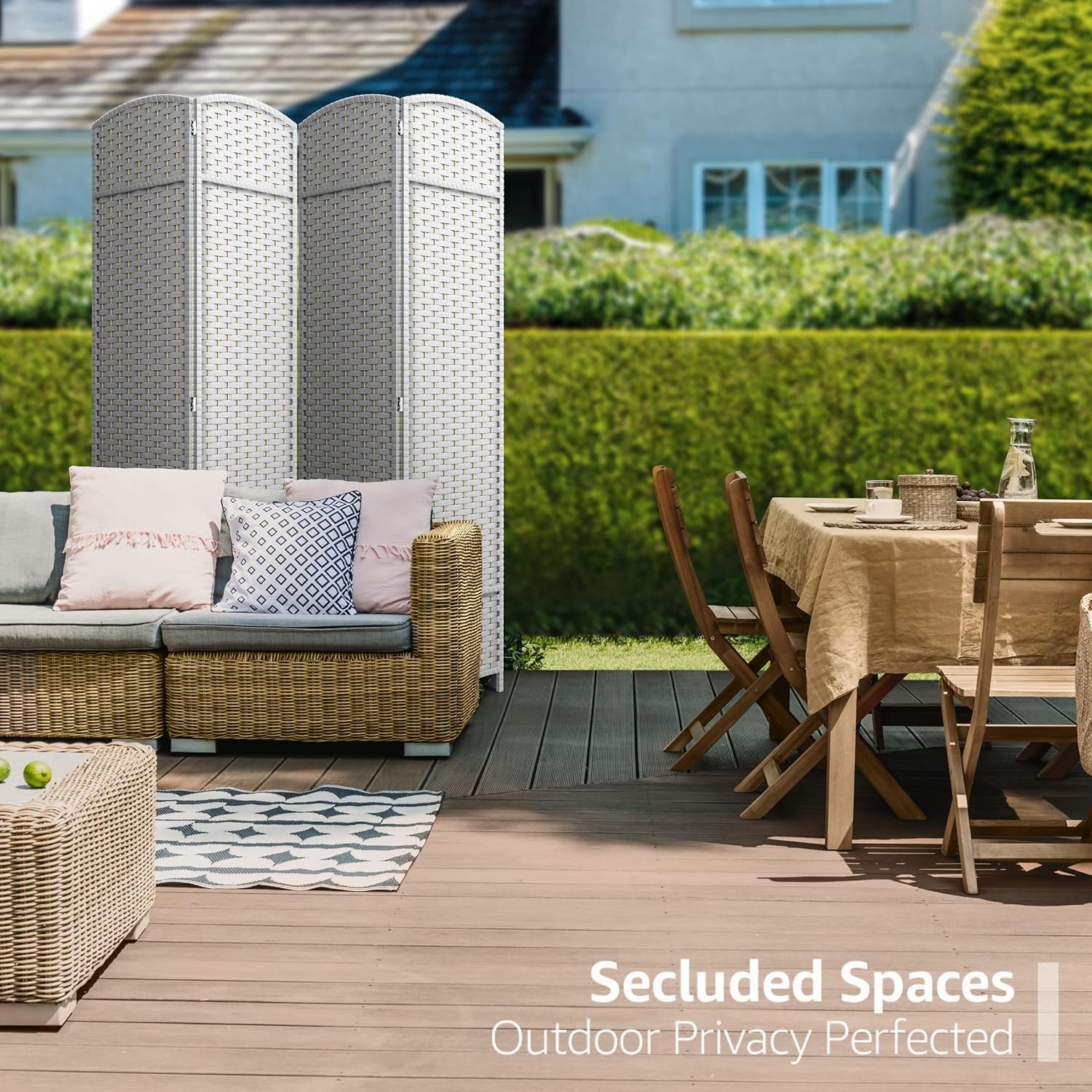 - Extra Wide Double Hinged Panels: Equipped with 4 double hinged panels and measuring 6 ft. tall, this room divider is extra wide for maximum coverage. Each panel measures 15.5 inches - When fully extended, the partition room divider measures 64 in x 69 in H - Perfect for use as a privacy screen, it also makes a great outdoor privacy screen