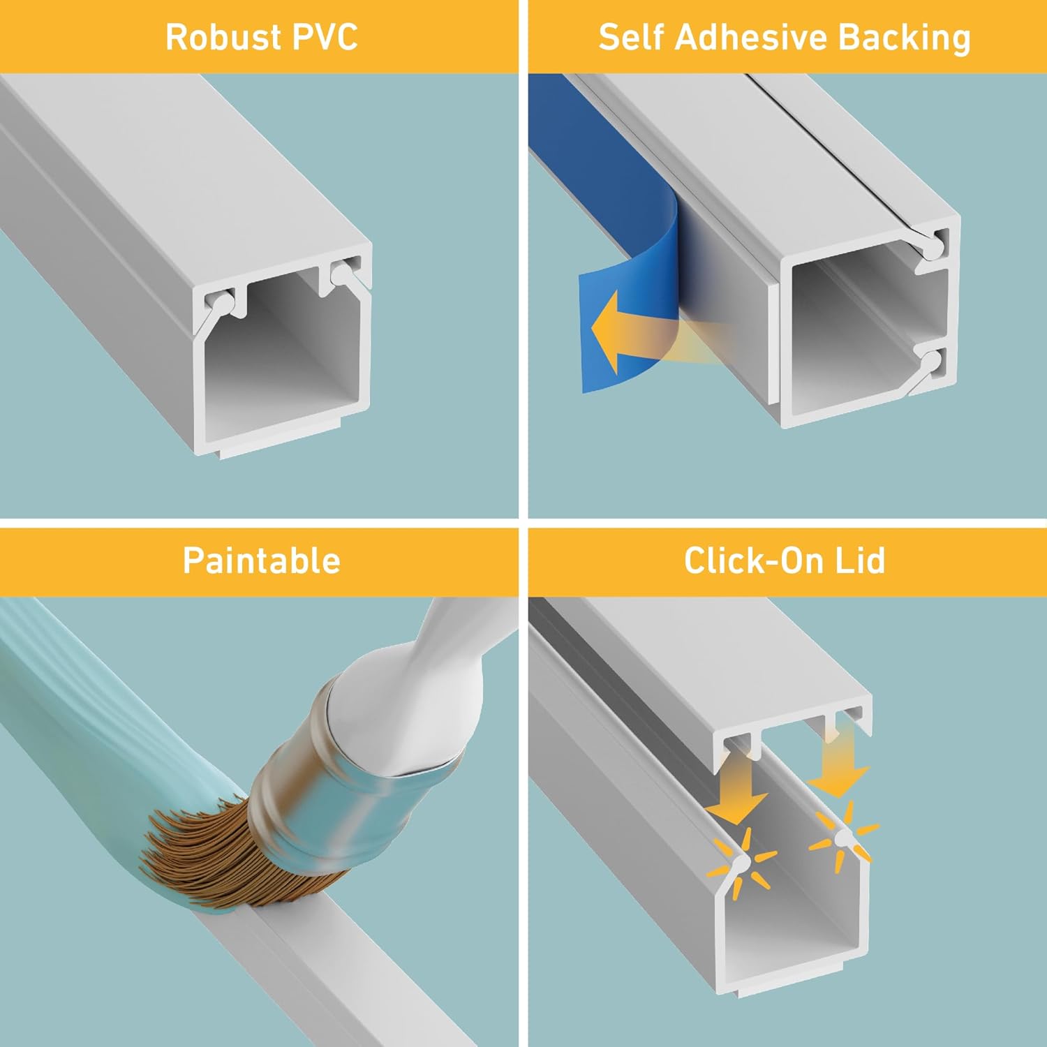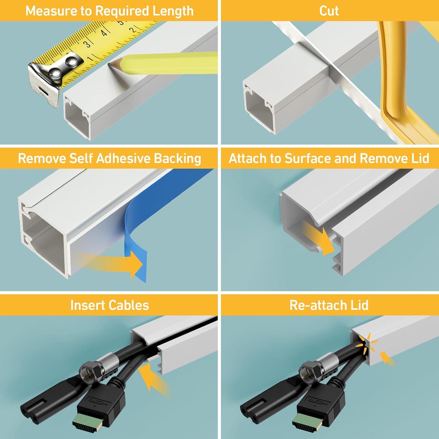 - EASY TO INSTALL: strong self-adhesive backing, and two piece design, provides a quick easy solution for covering surface cords.