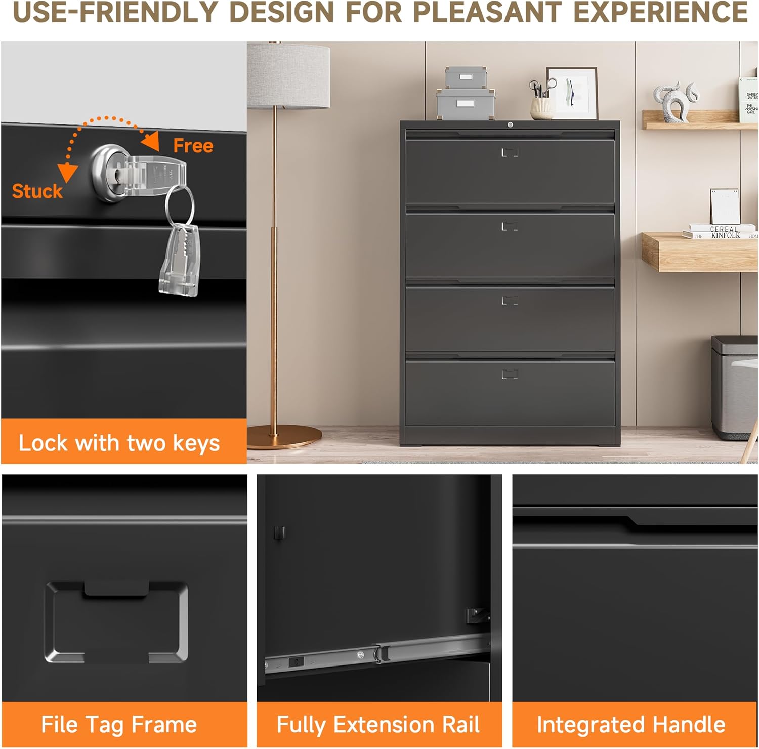 - ăEasy to AssembleăLateral file cabinets with lock need simple assembly, we will have assembly instructions to help you complete the assembly. If you have any problems with the installation, you can contact us at any time by email, and we will provide you with the best solution