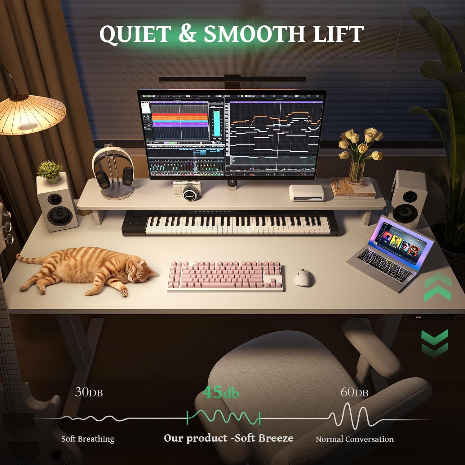 - Customized Sit Stand Desk : The reliable motor operates quietly (under 45 dB)and smoothly, all your things stay steady&secure in motion. The intuitive control panel allows you to preset 3 preferred heights, switch between sitting and standing positions has never been easier. Child lock for total peace of mind.