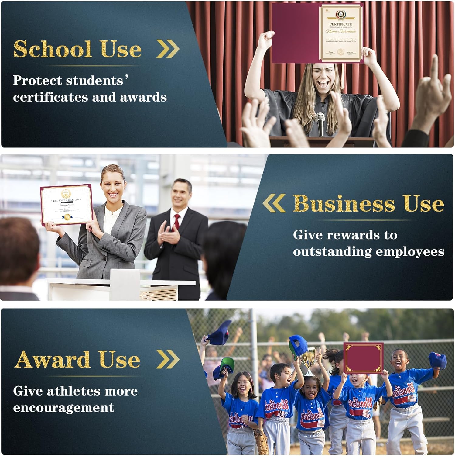 - WIDE APPLICATION: Certificate covers were great for the presentation of awards and certificates! The ideal choice for schools, enterprises, organizations, Veterans Day, and churches to present awards and certificates