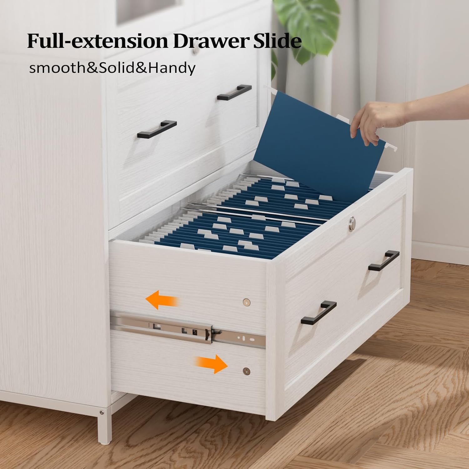 - ăLocking DrawersăThis file cabinet offers both lockable file drawers accommodating two columns of letter size labeled folders hanging side by side. Movable stainless steel hanging rods can be moved to any position which is friendly to various types of files like legal or A4 size folders