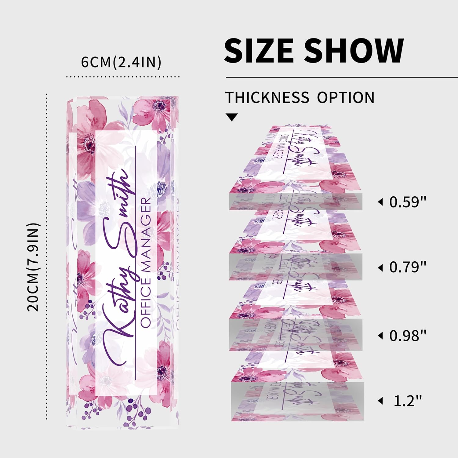 - 【Perfect Office Decor】Desk name plate personalized may be an indispensable item around you. It can be used as decoration for various occasions, such as offices, study rooms, conference rooms, classrooms. It also comes in 4 different sizes, suitable for different office scenarios, Clear 3D effects showcase your favorite fully designs and names, add an extra touch of elegance to your office.