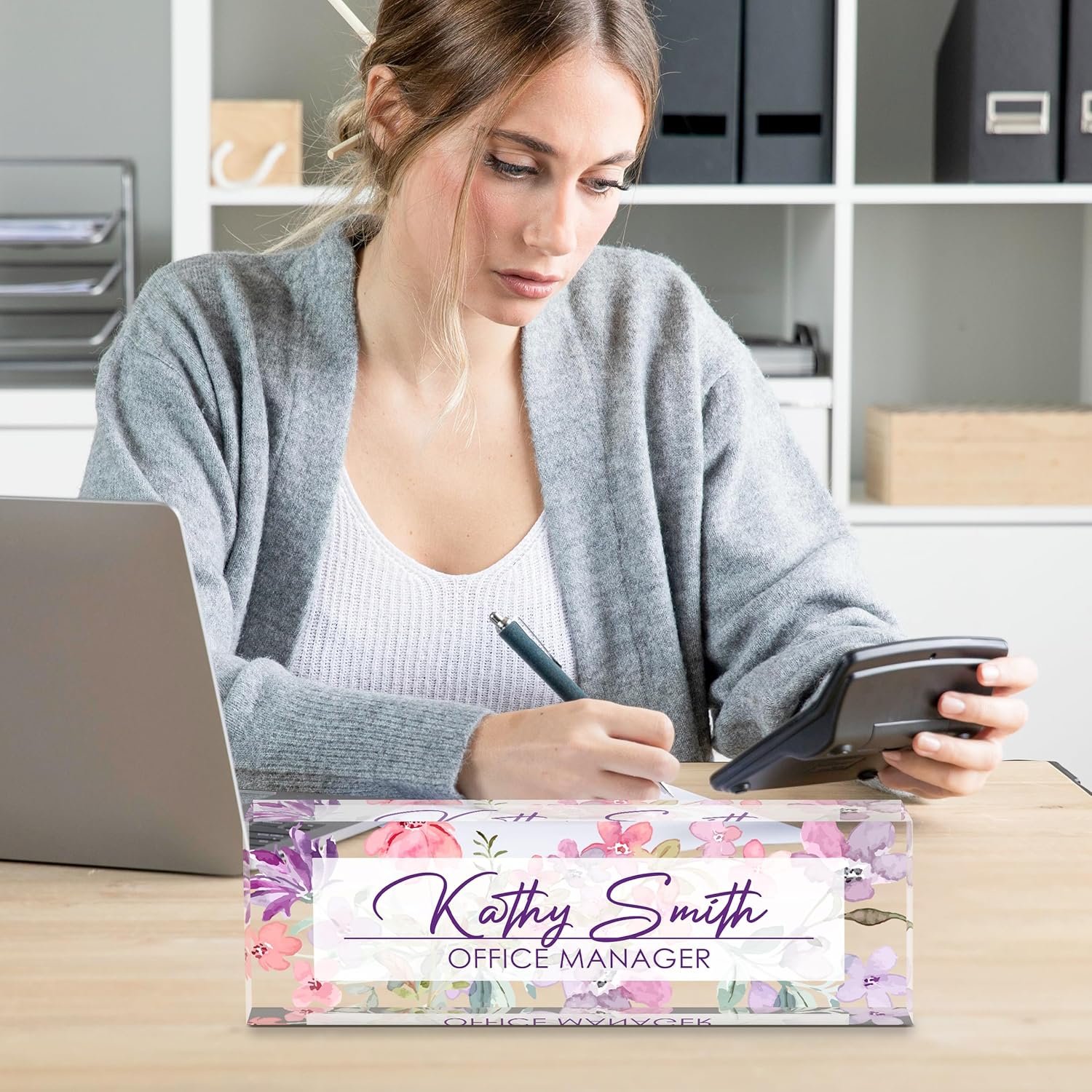 Personalized Name Plate for Desk, Custom Desk Name Plate, Acrylic Name Plate Office Desk Accessories, Personalized Office Gifts for Coworkers Teachers, Employee Appreciation Gifts (A-WaterColor3)
