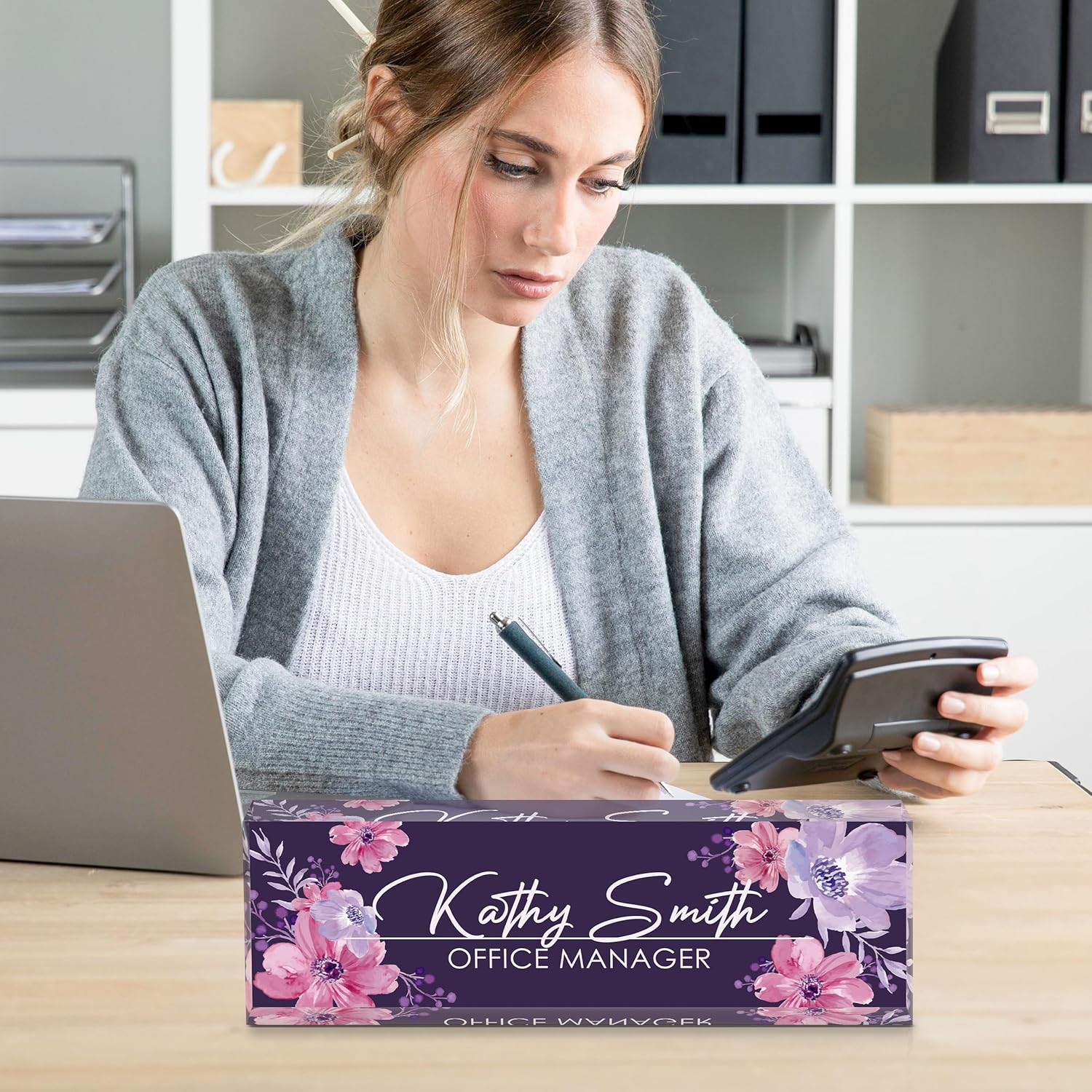 Personalized Name Plate for Desk, Custom Desk Name Plate, Acrylic Name Plate Office Desk Accessories, Personalized Office Gifts for Coworkers Teachers, Employee Appreciation Gifts (B-Watercolor)