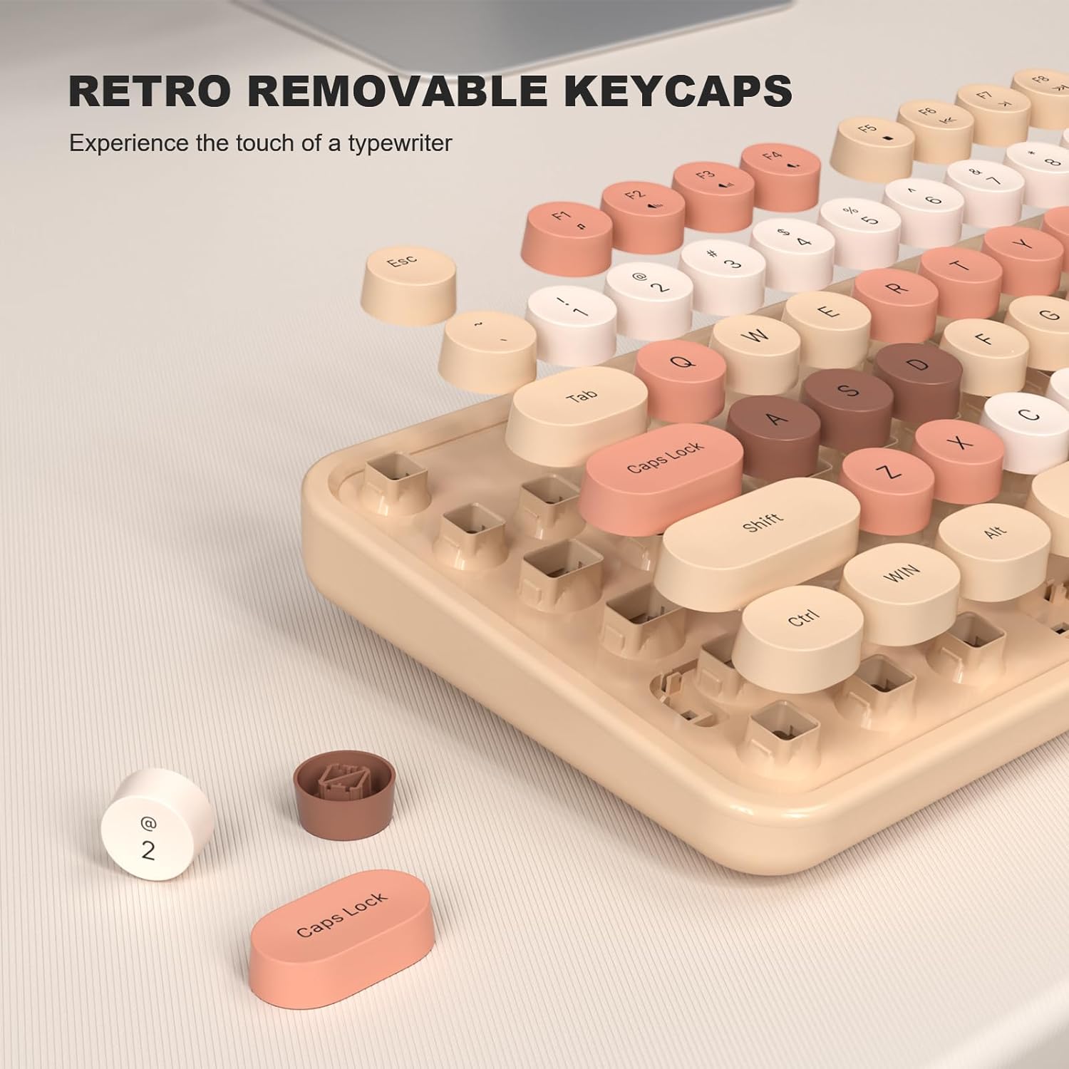 MOFII Wired Keyboard, Full Size USB Keyboard Plug Play, Colorful Retro Round Typewriter Keyboard with Foldable Stands for Windows PC Laptop (Milk Tea Colorful)