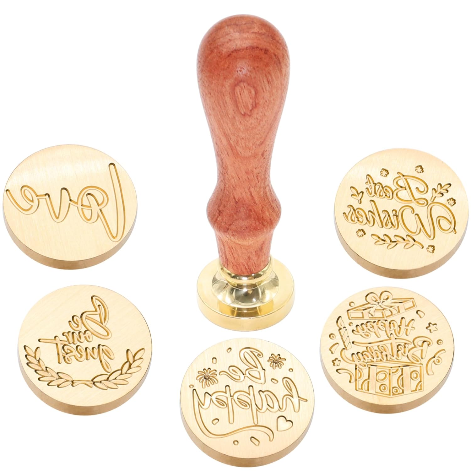 - Wax Seal Stamp Size: Stamp head diameter: 25mm/0.98''; total lenght of the stamp: 90mm/3.54''. Packing includes: 6 x wax seal stamp heads (be our guest, love, happy, best wishes, happy birthday, thank you!) + 1 x wooden handle + 1 x gift box (not including sealing wax)