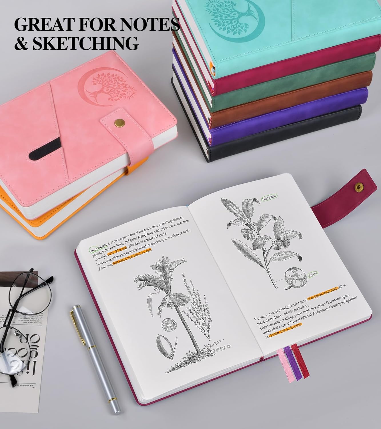 - 【180°LAY FLAT DESIGN】This drawing journal comes with 3 colored ribbon bookmarks, so you can mark your favorite pages with ease. The 180° lay flat design enables you to work on your drawings or writing without any distractions of bent pages. The unlined notebook ensures you have the freedom to sketch and write without any constraints.