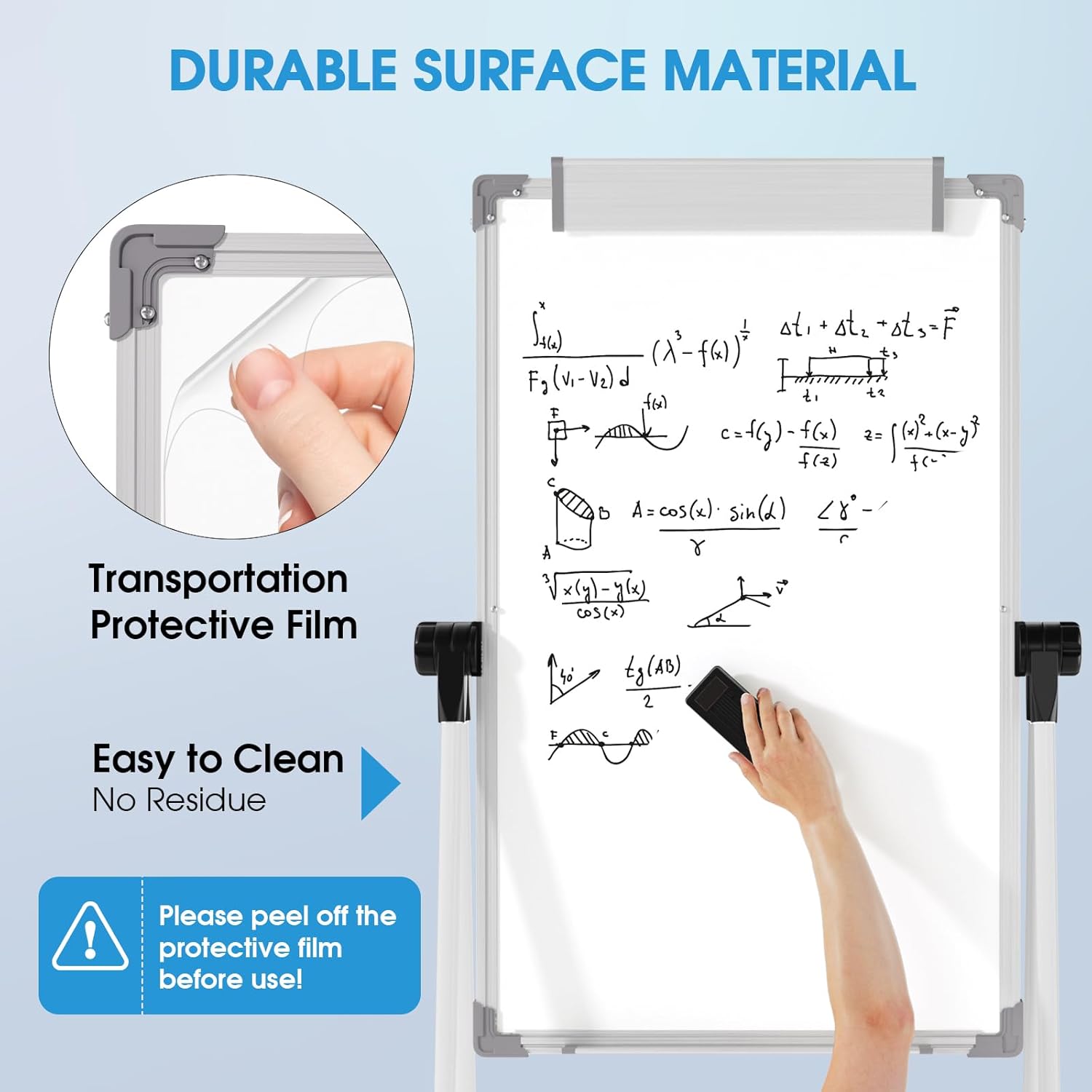 - Height & Angle Adjustable Design: Our double-sided dry erase board features adjustable height and angle, catering to diverse usage scenarios. Perfect for kids, students, and adults at home, school, office, or even as a standout display at the entrance of a retail store. It is a multi-purpose product that cannot be overlooked.