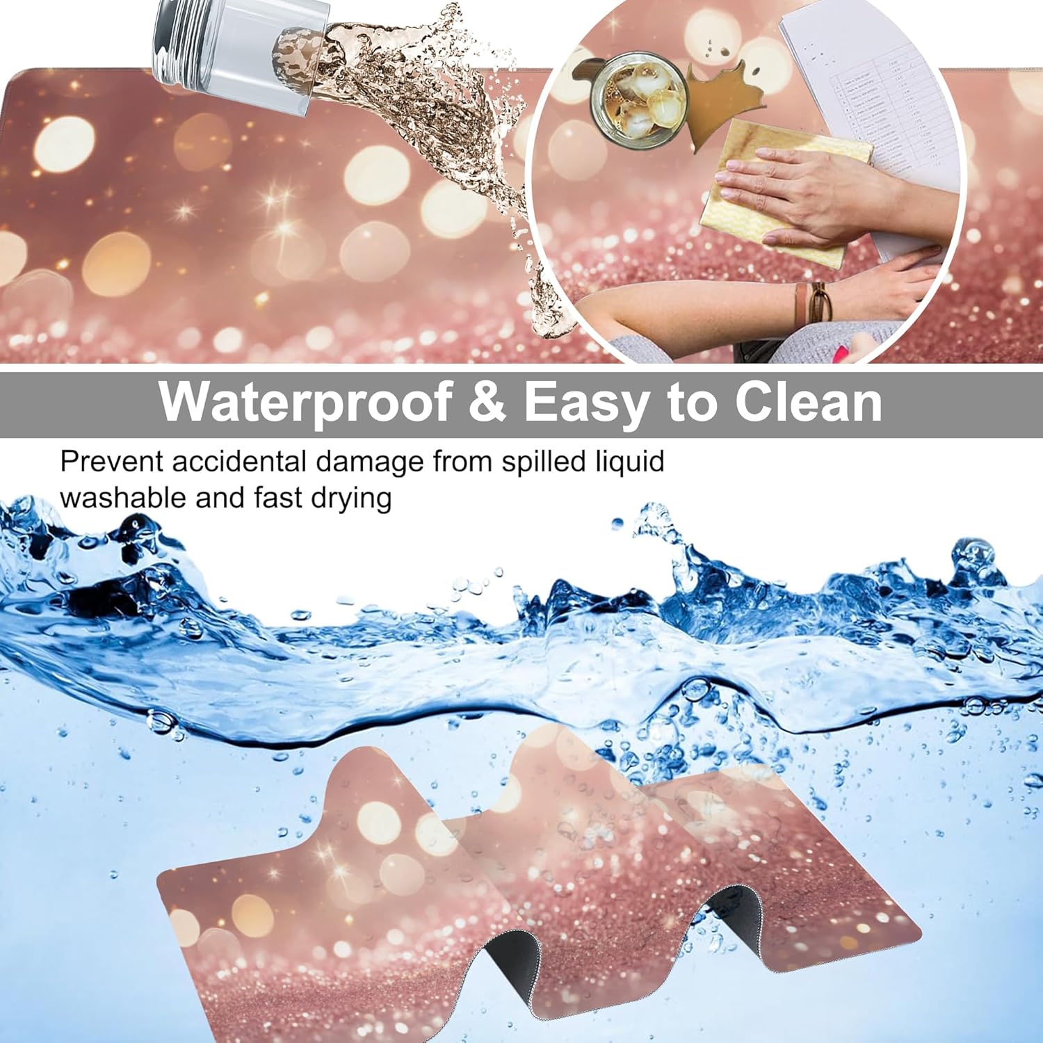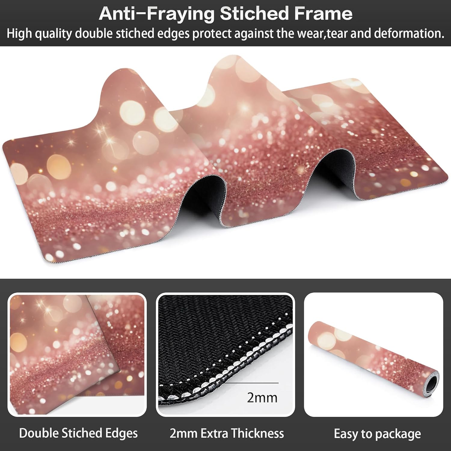 Extended Large Gaming Mouse Pad, Rose Pink Glitter Large Desk Mat for Desktop XXL, Non-Slip Rubber Base Stitched Edges Long Computer Keyboard Desk Pad Mouse Mat for Gaming Home Office 35.4"X15.7"