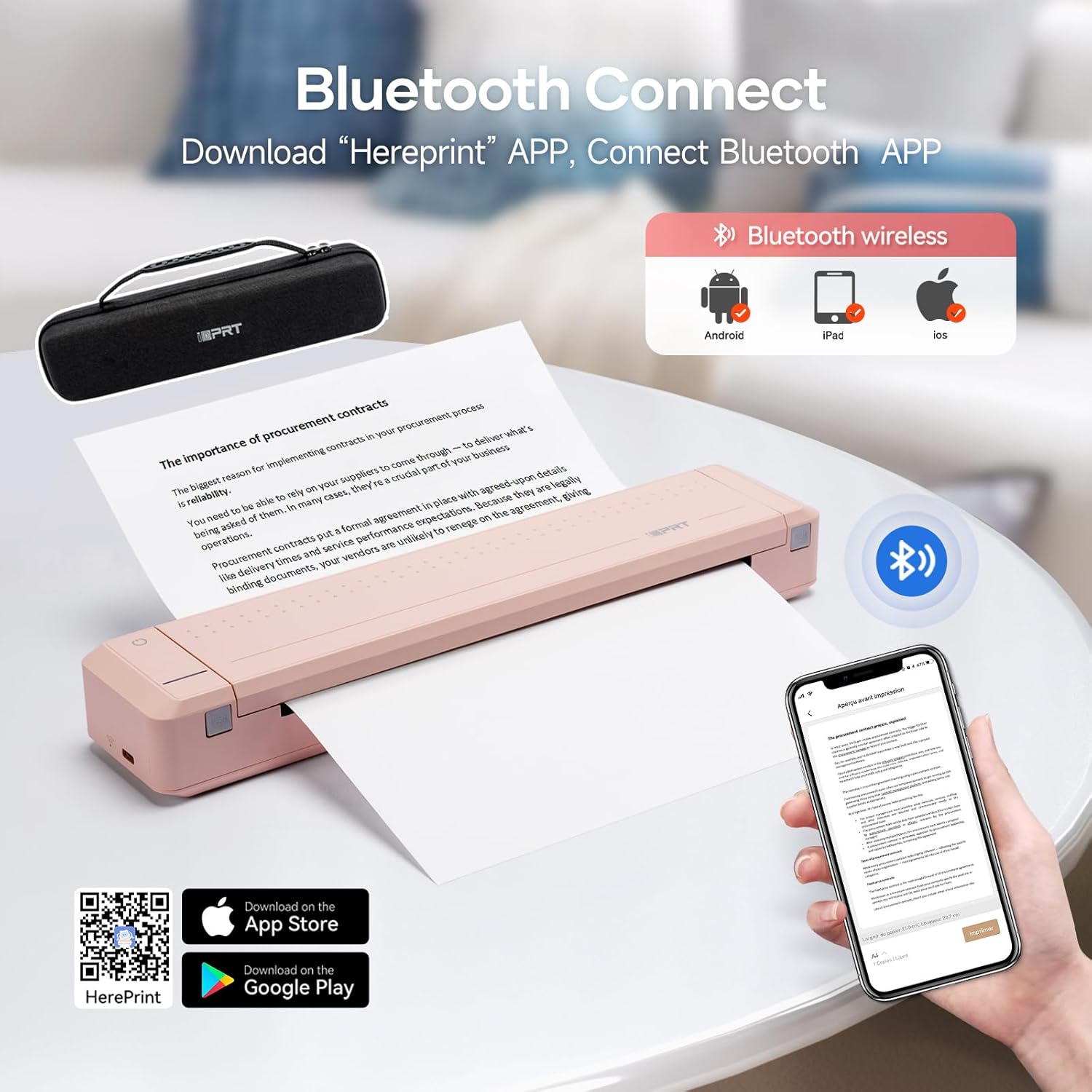 iDPRT Portable Thermal Printer with Case, 300DPI Inkless Mobile Printers for Travel, Home, Office, School, Vehicles, Support 8.5" X 11" US Letter/A4/A5, Wireless Bluetooth Printers, Pink