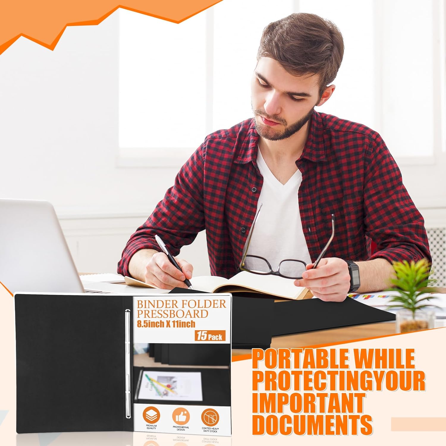 Zhanmai 15 Packs 8.5'' x 11'' Pressboard Report Covers, Metal Prong Fastener with Compressor, Letter Size 3'' Capacity Presentation Report Folder to Neatly Bind Reports, Proposals, Documents(Black)