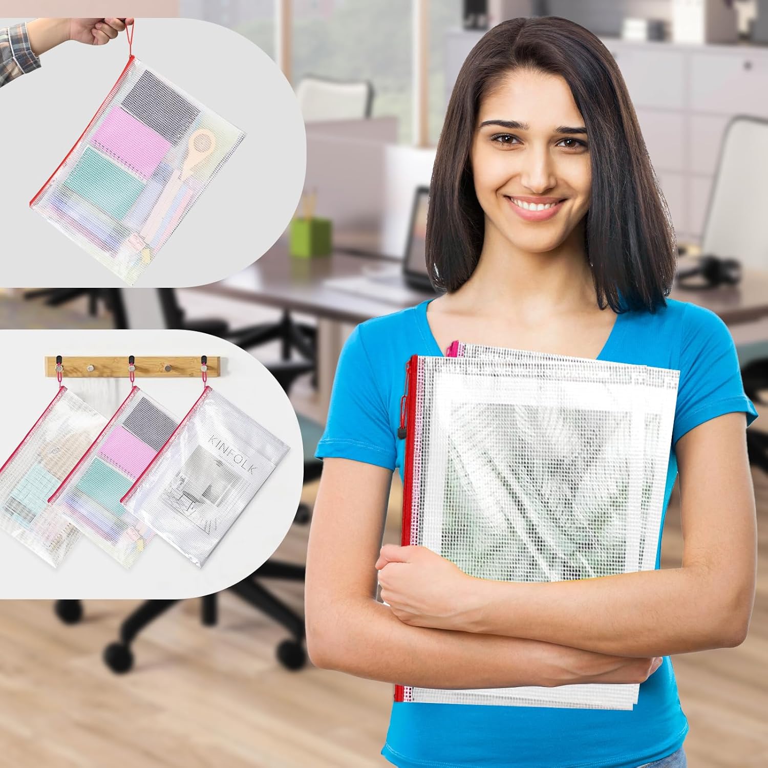 - Plastic Mesh Pouches are Made of Sturdy PVC,Waterproof and Moisture Resistant (Except the Zipper).They are Practical to Organize with Around Your House, and are Useful for Travel.They are Also Great for Holding Board Games Items, Seasonal Decor, and They Make Great Travel First Aid Kits. Zippers are Smooth,They Can be Wiped Clean Easily.
