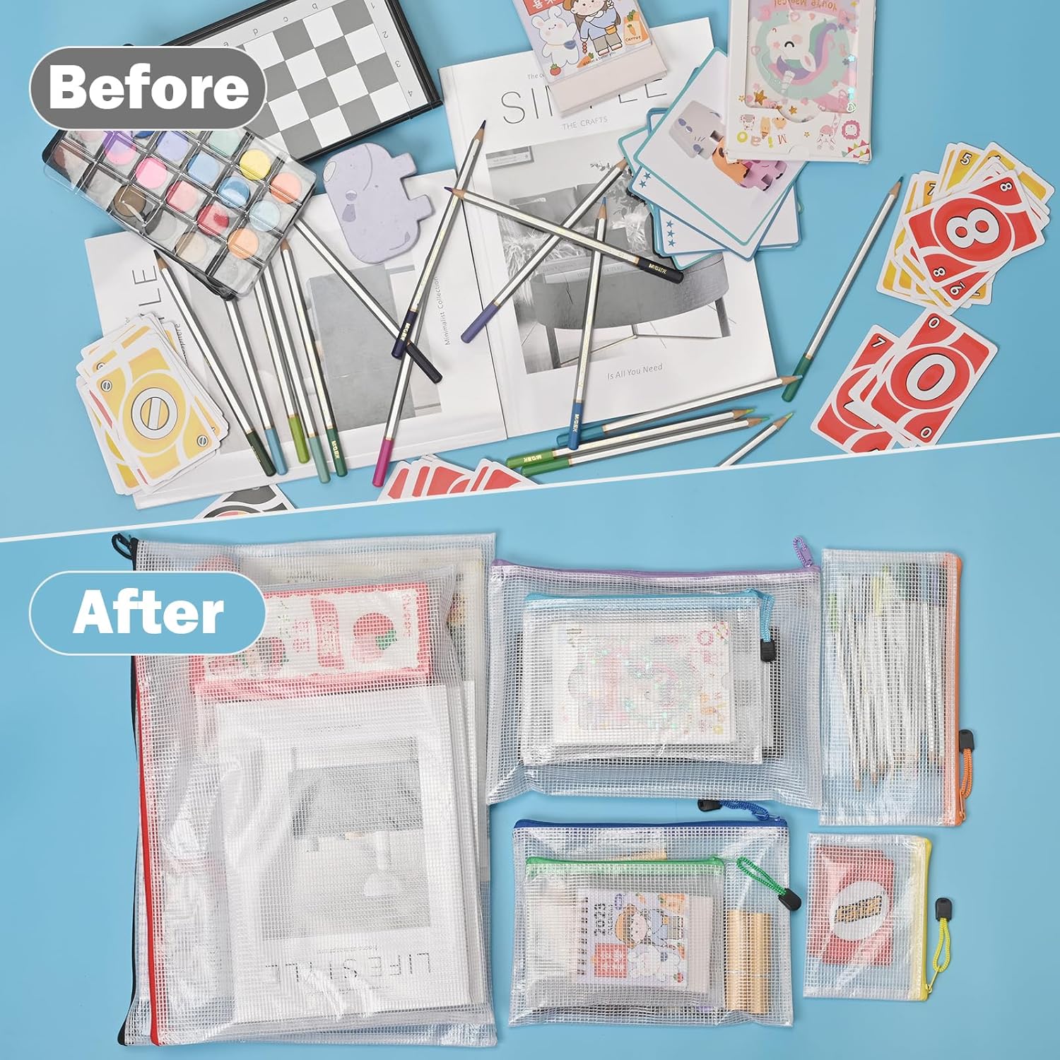 20pcs Mesh Zipper Pouch Bags,9 Sizes Plastic Zipper Bags for Organization,Reusable Zipper Pouches for Puzzle Board Game Storage,for Travel School Office Supplies.