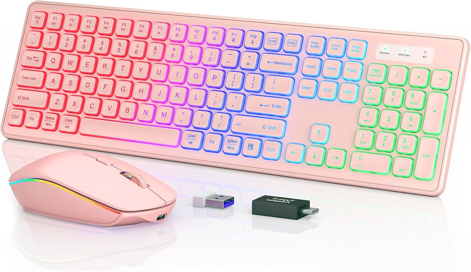 Wireless Keyboard and Mouse Combo - RGB Backlit, Rechargeable & Light Up Letters, Full-Size, Ergonomic Tilt Angle, Sleep Mode, 2.4GHz Quiet Keyboard Mouse for Mac, Windows, Laptop, PC, Trueque, Pink