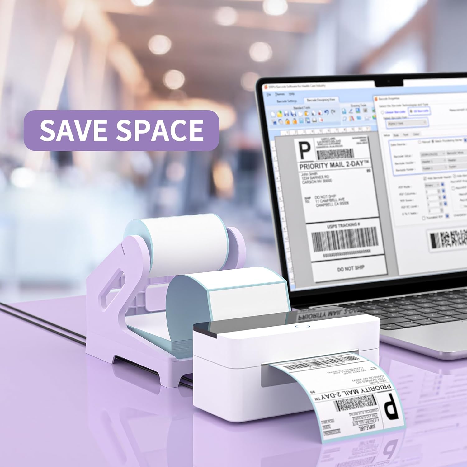 PONNOR Label Holder Thermal Label Holder for Rolls and Fanfold Labels Shipping Label Stand Desktop Printer DIY Accessory Supplies for Home, Office (Fresh Purple)