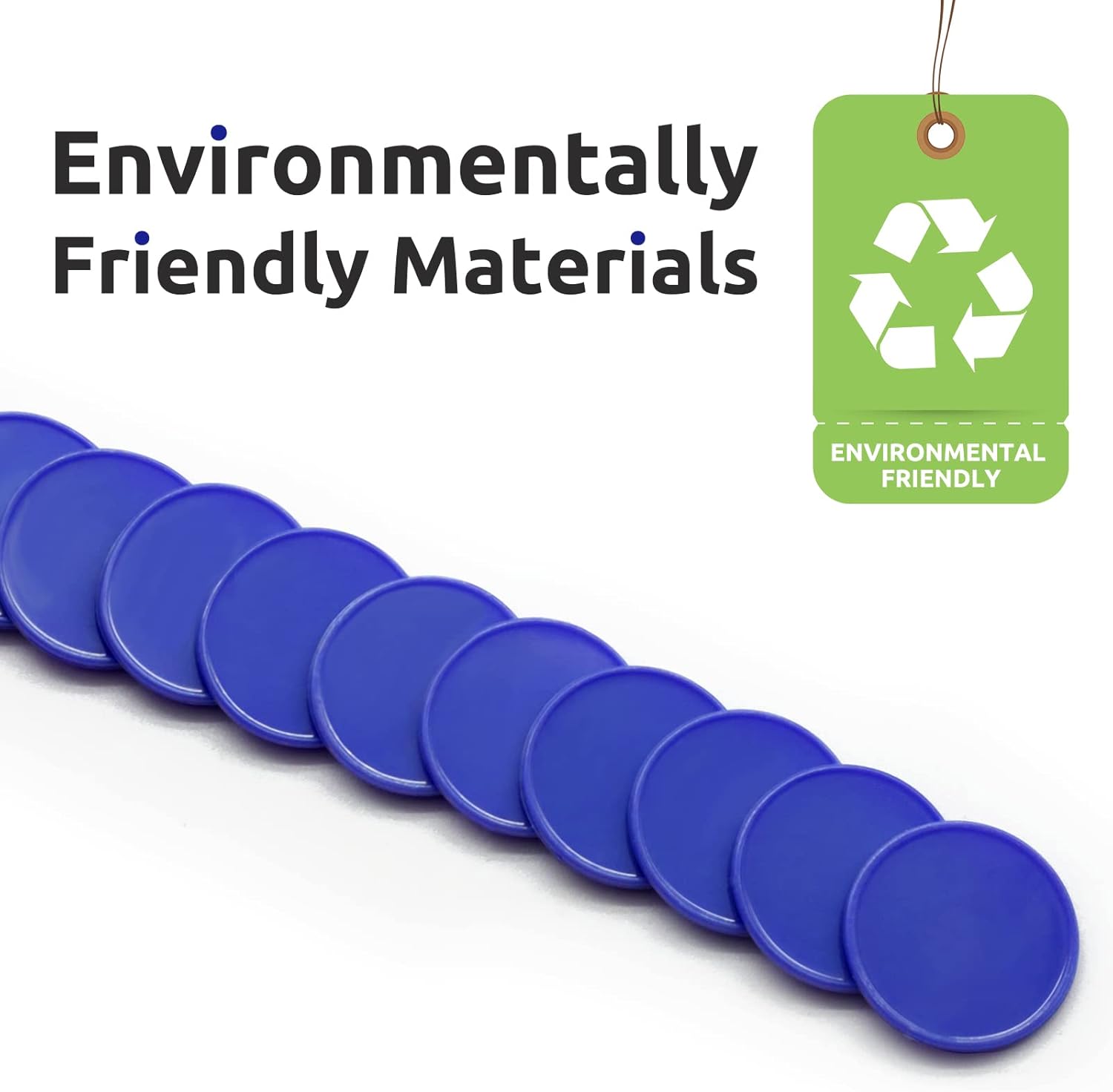 Set of 100 Opaque Plastic Learning Counters Mini Poker Chips Game Tokens with Storage Box (Blue, 1.58 Inch)