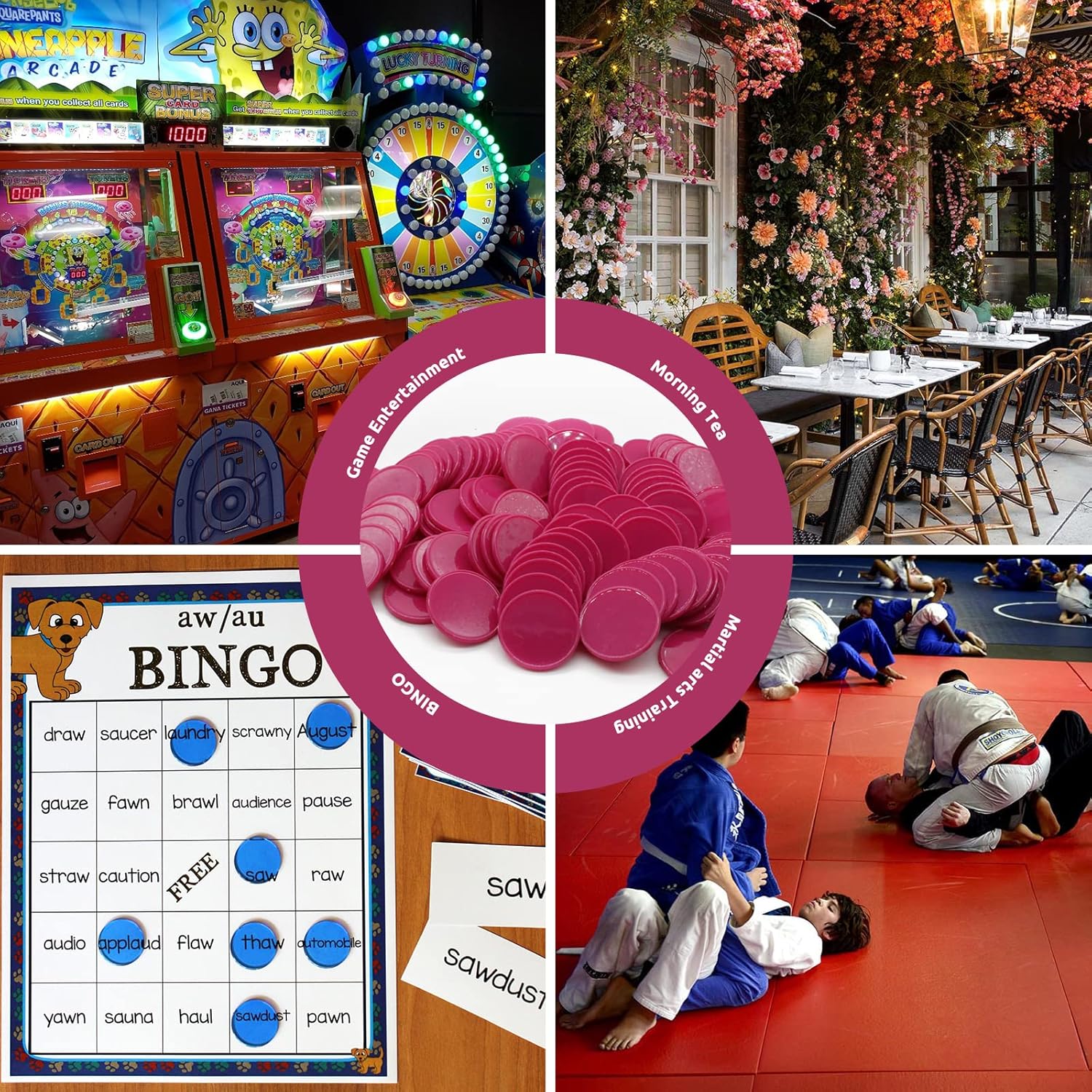 Set of 100 Opaque Plastic Learning Counters Mini Poker Chips Game Tokens with Storage Box (MediumVioletRed, 1.26 Inch)