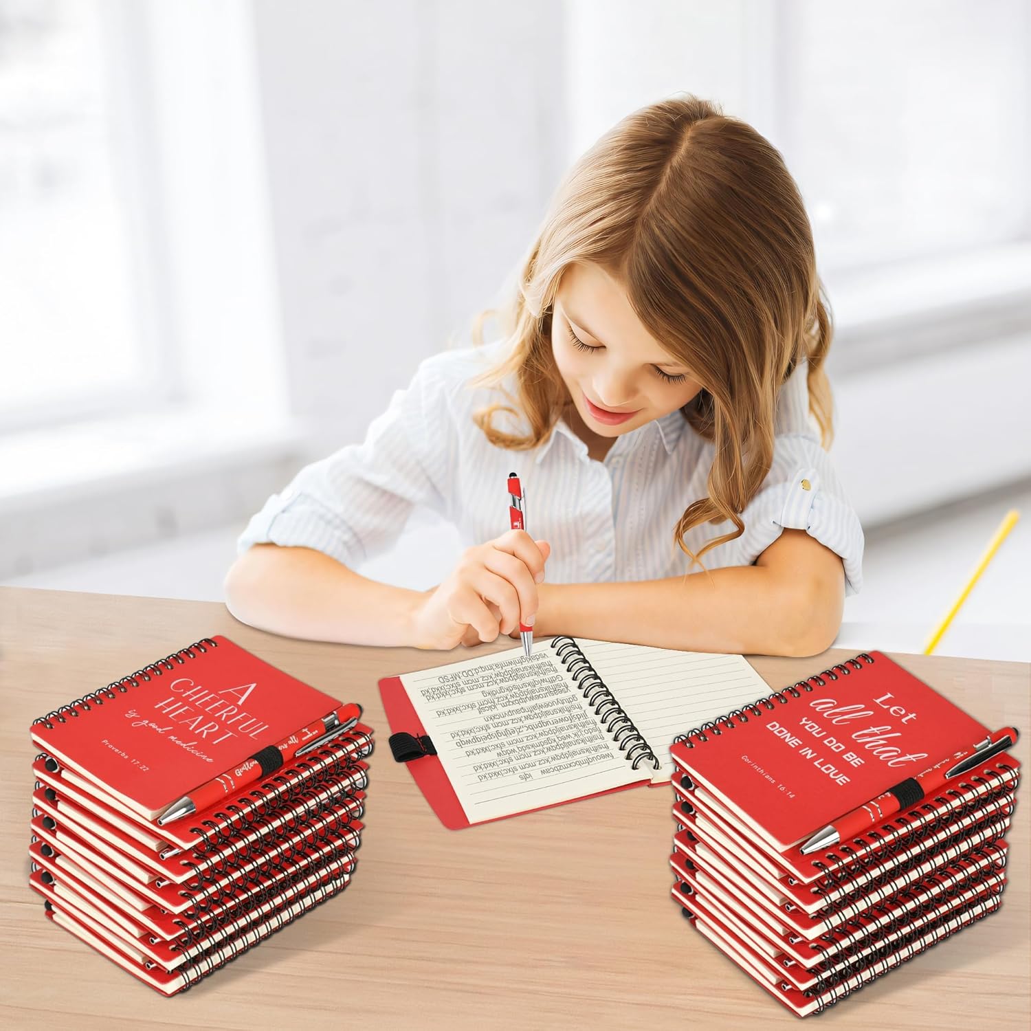 Christian Prayer Journal Spiral Red Notebooks Bulk with Pens- Small Notepads (4.13”x5.43”) - inspirational gifts for women, Church Members & Bible Study Groups (30 Sets Red)