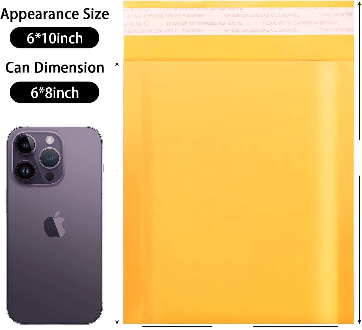 - Kraft Bubble Mailer Size :Outsize size SIZE: 6x10 inch, Usable size: 6x9 Includes 200 Kraft Bubble Envelopes.