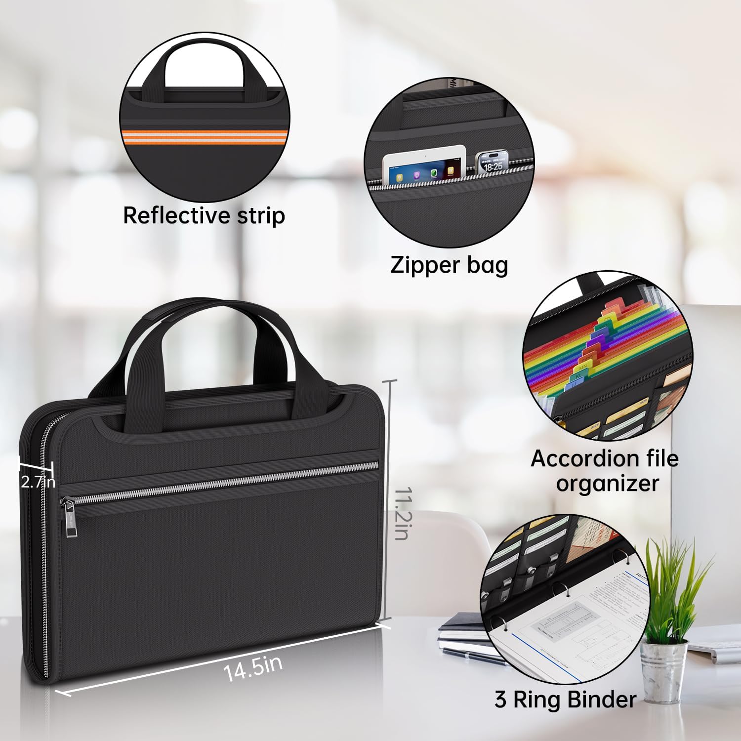 Fireproof Accordion File Organizer with Binder, 1 Inch D Rings Hold up 225 Sheets of 8.5" x 11", 13 Pocket Colorful Expanding File Folder with Zipper & Labels, Portable Travel Safe Storage
