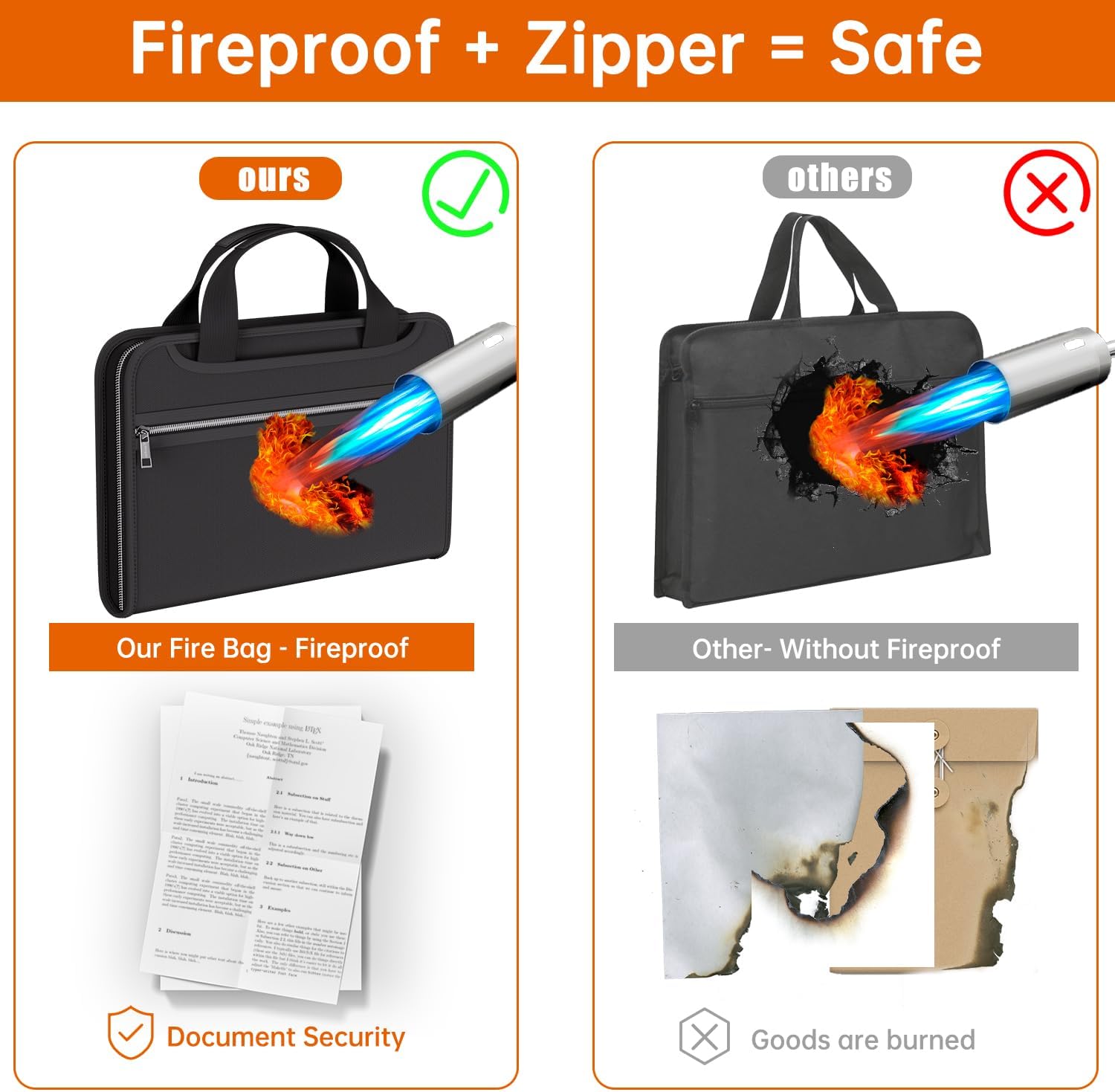 - 【Fireproof and Waterproof】ZOOPIP fireproof Accordion File Organizer with binder is made of not sticky Dust-proof Silicone coated fiberglass, which can withstand temperatures up to 2000°F. Fireproof file box with zipper closure has been passed by SGS TEST:UL94 VTM-0 Certified. At the same time, the glass fiber has excellent waterproof performance. In most cases, our storage pouch can withstand the impact of water.