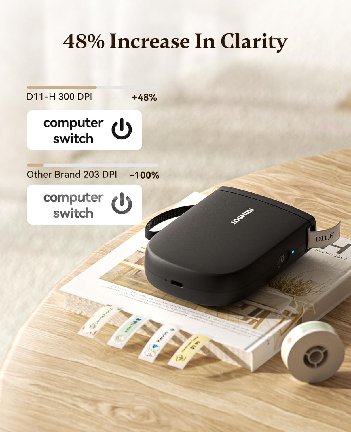 - 【NIIMBOT D11 LABEL MAKER 2024 Version】After the technical updating, we combine the label maker with the smart device, which is more convenient and powerful. The weight and volume are only half of the traditional version. from now on, we bid farewell to the heavy, power-consuming, and money waste old version.