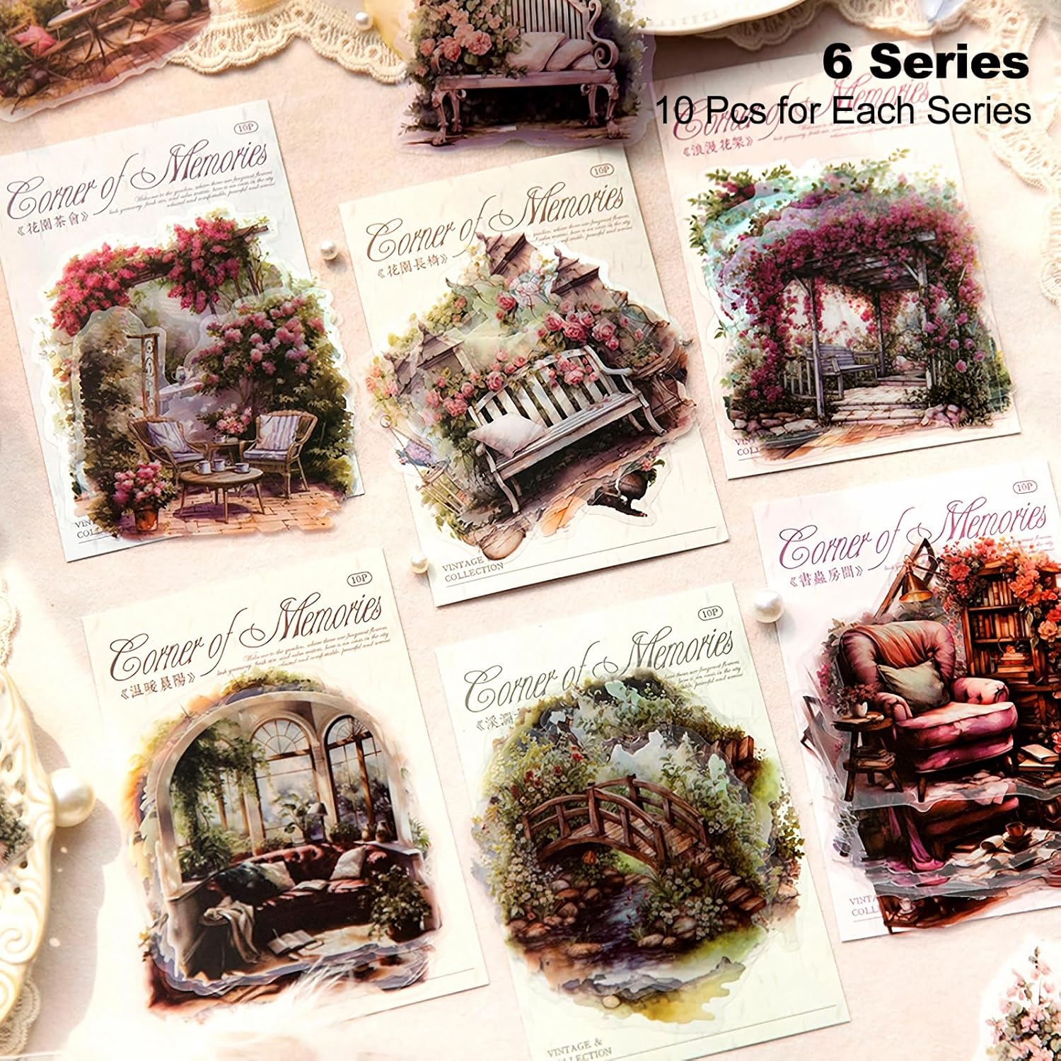 - Elegant Reflections: Discover the "Corner of Memories" Scrapbook Stickers, each design a serene reflection of everyday elegance, perfect for adding a sophisticated touch to your scrapbook and journal pages.