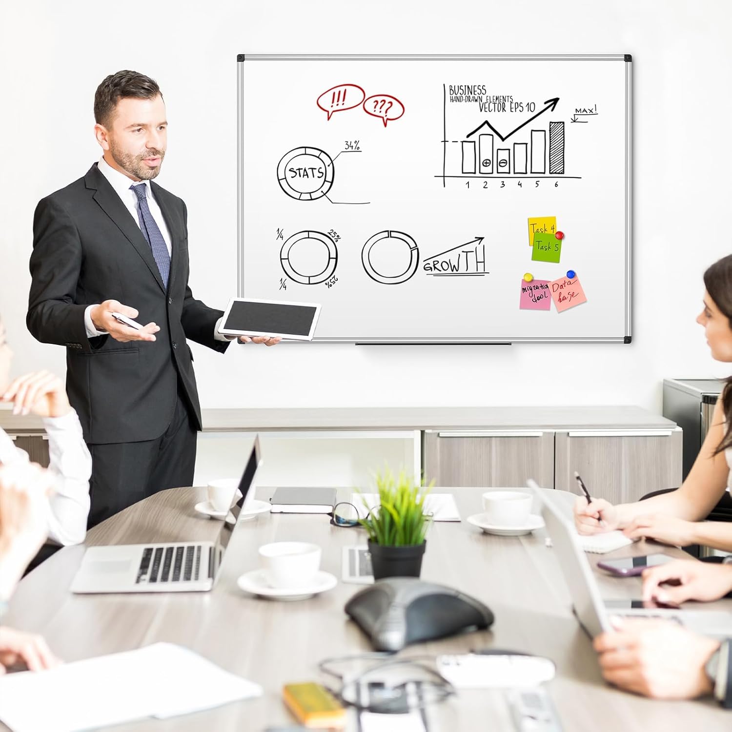 Magnetic Dry Erase Whiteboard 36 x 24 Inch - Small White Board, Silver Aluminum Frame Wall-Mounted, Magnetic Eraser, 2 Pens, Detachable Marker Tray, 6 Magnets for Office, School