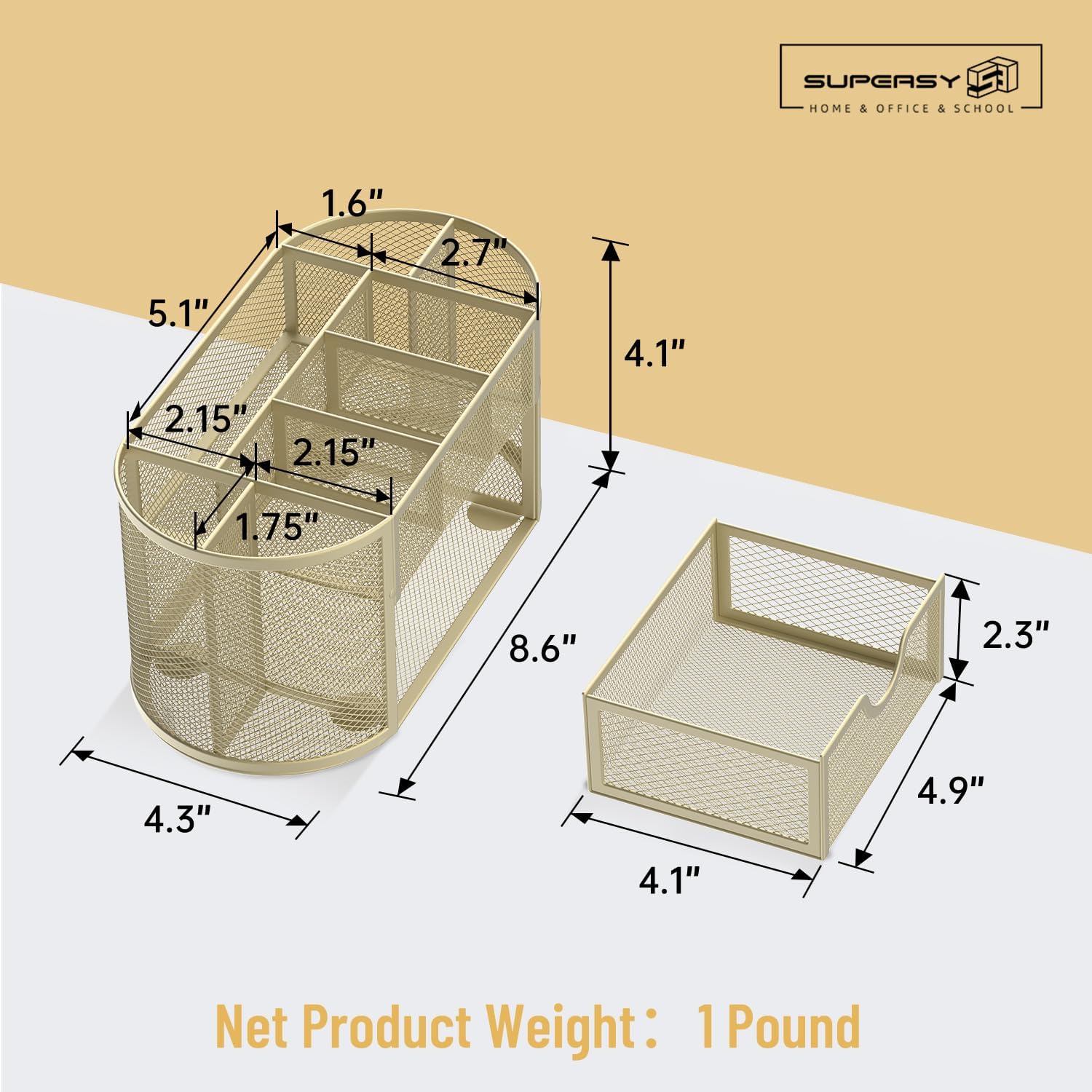 - [ ๐๐ซ๐จ๐๐ฎ๐๐ญ ๐๐ข๐ณ๐ ] Mesh pen holder size 8.6 L x 4.3 W x 4.1H inch,small drawer measures 4.9 L x 4.1 W x 2.3H.