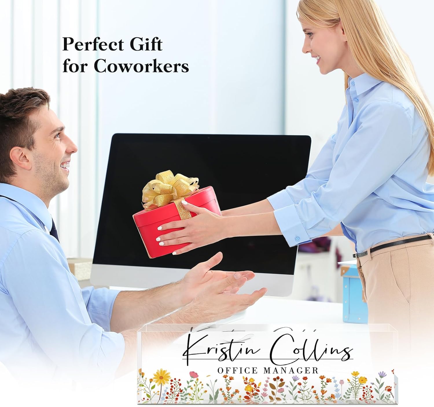 Custom Name Plate for Desk, Acrylic Office Decor For Women Men, Personalized Office Desk Accessories, Teacher Employee Appreciation Gifts For Social Worker Boss Coworkers (Flowers-1)