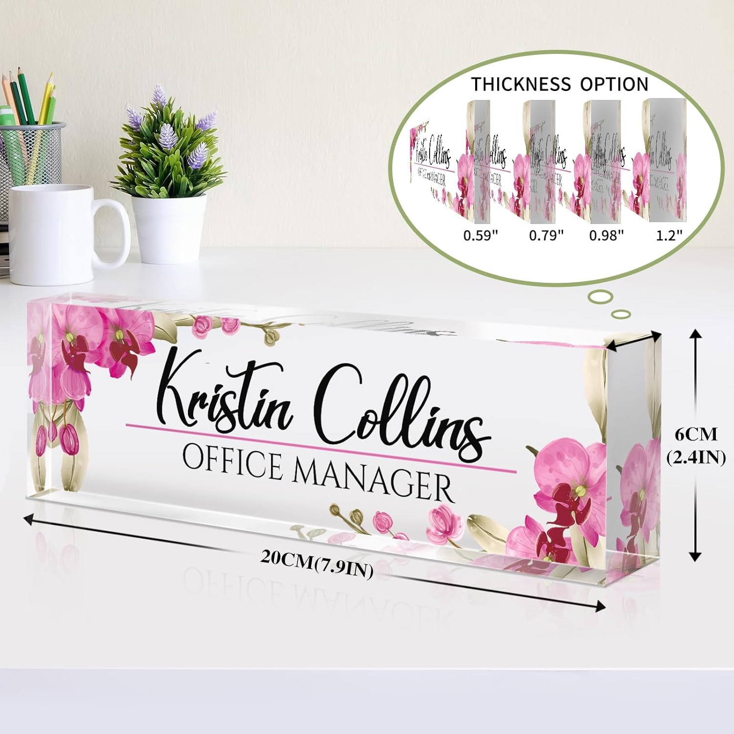 - 💎 Premium Quality: Crafted from premium acrylic, the personalized desk nameplates are built to last. With exceptional durability and clarity, they're ten times stronger than glass. And thanks to the special UV printing technique, the colors stay vibrant and the text stays sharp, no matter how much time goes by.