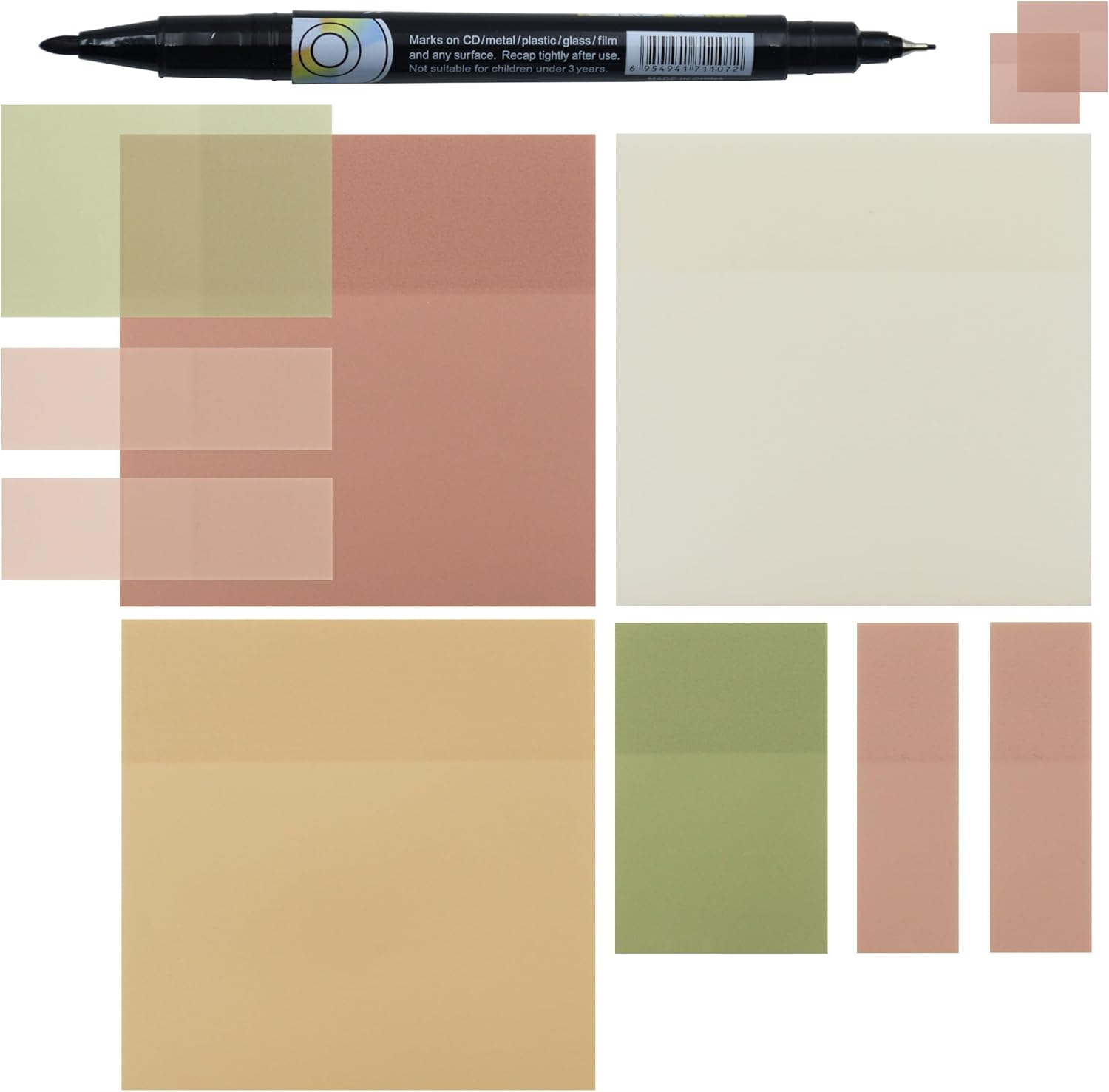 - 【Tips】The transparent sticky notes are made of waterproof PET, and for a better user's experience, please use markers, ballpoint pens, pencils, oil-based markers to write on translucent sticky notes. Gel and water-based pens are not recommended. And our marker pen has thick and thin ends, writes smoothly, is very easy to write anything and dries in seconds.