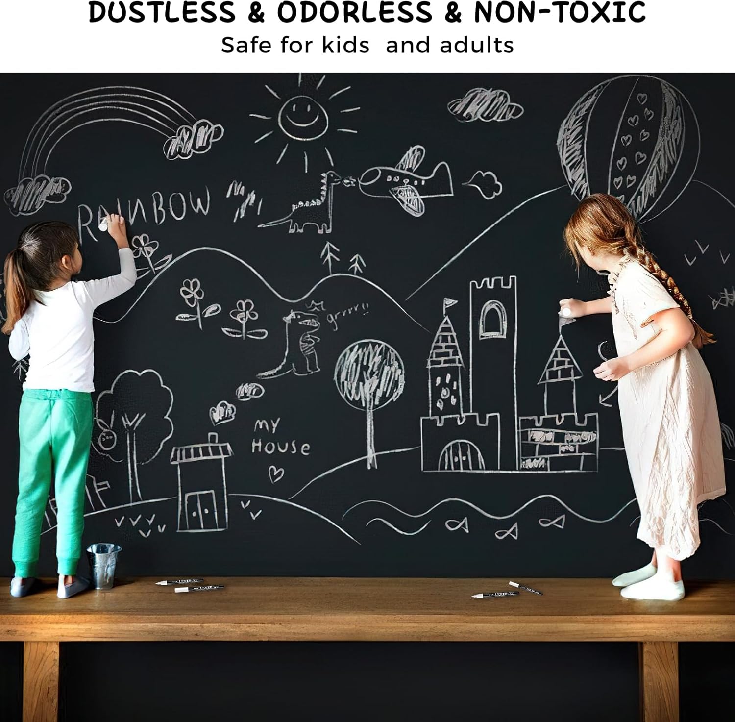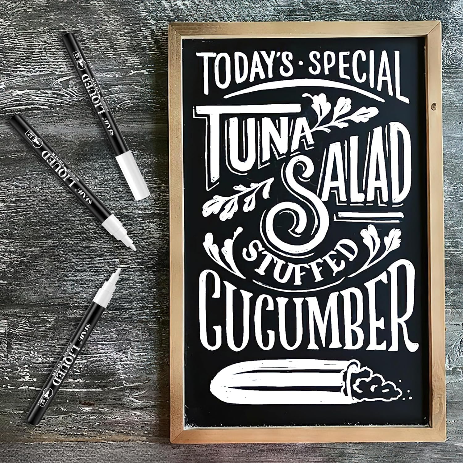 - EFFORTLESS WRITING AND ERASING: Our white chalk pens feature a reversible dual tip design, allowing for flexible and diverse writing and drawing. Cleaning up is a breeze with liquid chalk markers erasable - simply wipe away residue with a damp cloth or eraser without leaving any marks, making your work more efficient and professional.