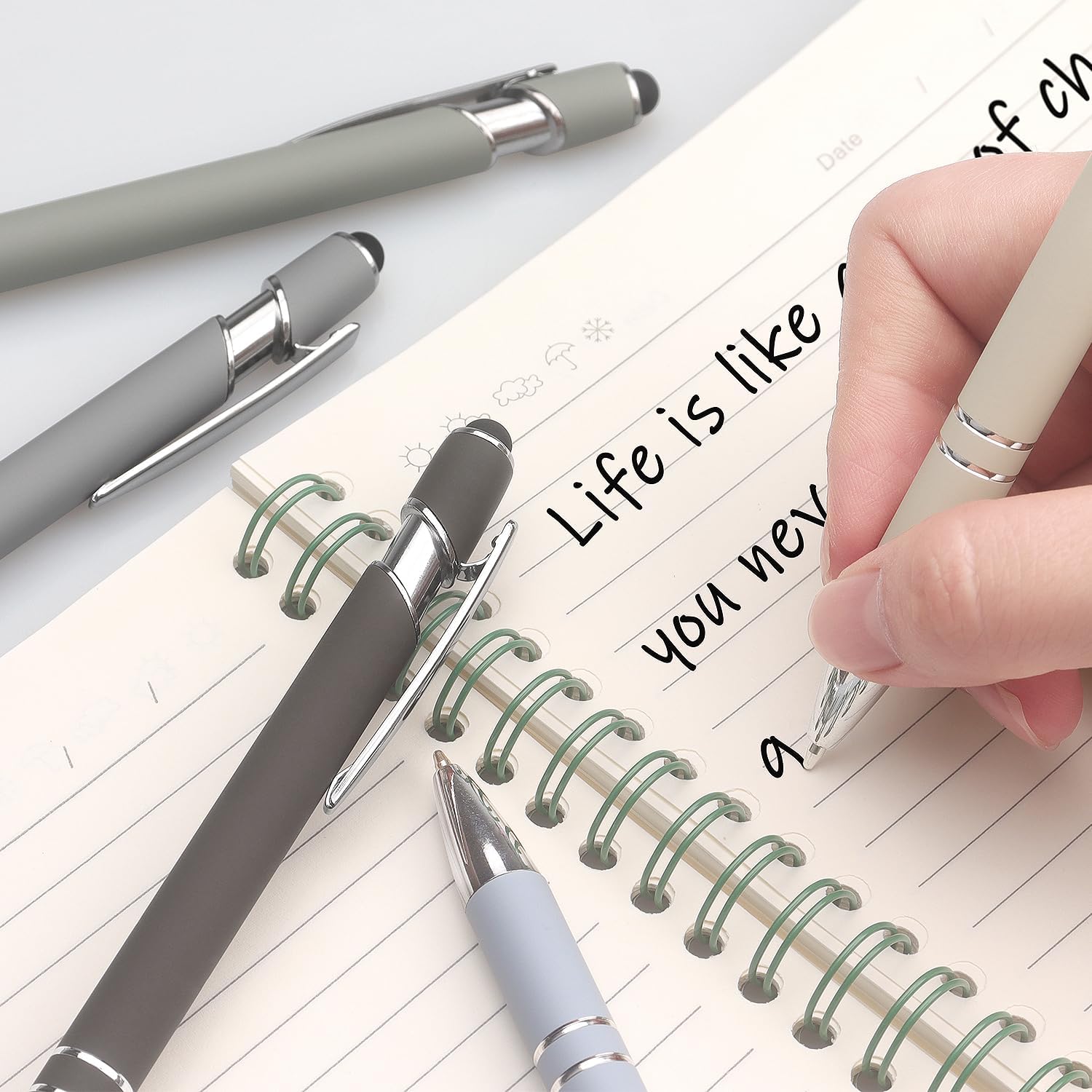 Bribobo Ballpoint Pen 2-in-1 Stylus Retractable Ballpoint Pen with Stylus tip, Metal Stylus Pen for Touch Screens, 1.0 mm Black Ink (Pastel Color) 6 Pack