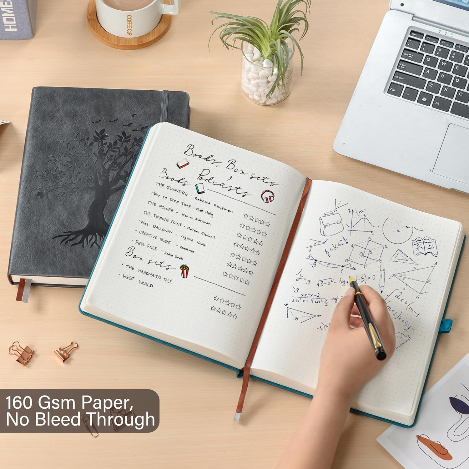 ZXHQ B5 Bullet Dotted Journal Notebook:150gsm Thick Paper, 256 Pages, Dot Grid Hardcover, Tree of Life Design, Fine Inner Pocket - 7.7" × 10" Dark Grey