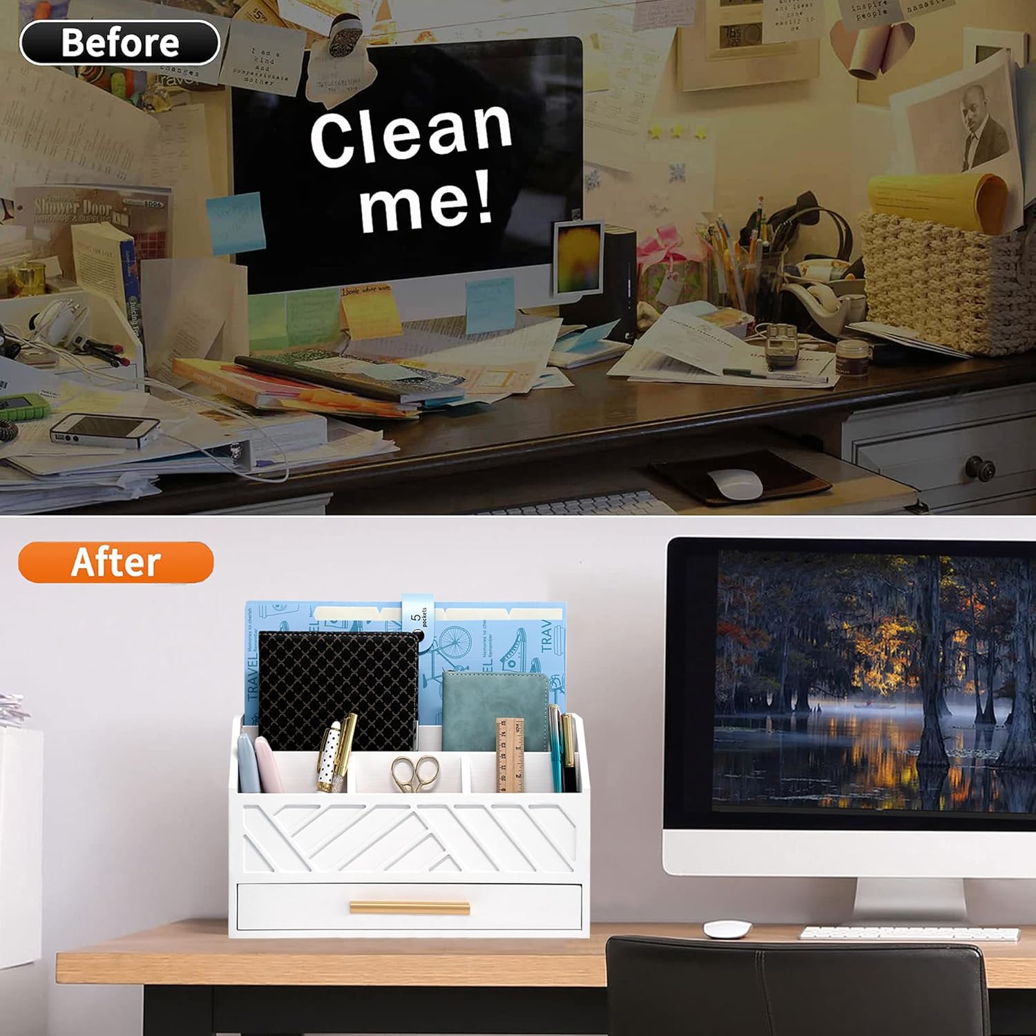 - EXQUISITE APPEARANCE: This white desk organizer has a modern and elegant appearance design, which can help you and your family eliminate the troubles of daily clutter. It can help you create a designated workspace that is both functional and aesthetically pleasing