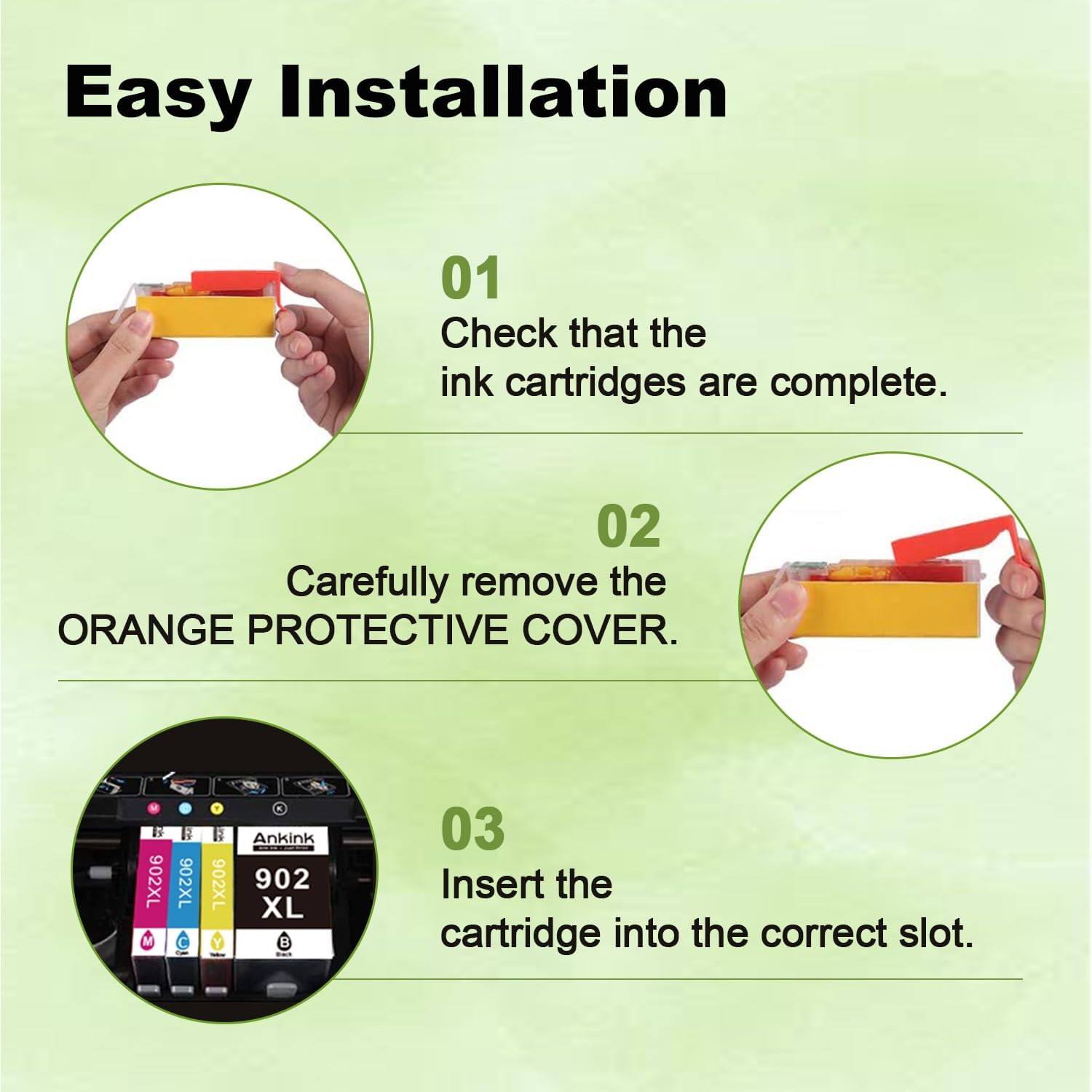 - Higher Yield: Optimisation of cartridge space and use of superior sponge to improve ink storage capacity, resulting in a nearly 3-fold increase. Up to 950 pages for each Black 902XL ink cartridge, and 850 pages for each Color 902XL ink cartridge, based on 5% coverage (Letter/ A4)