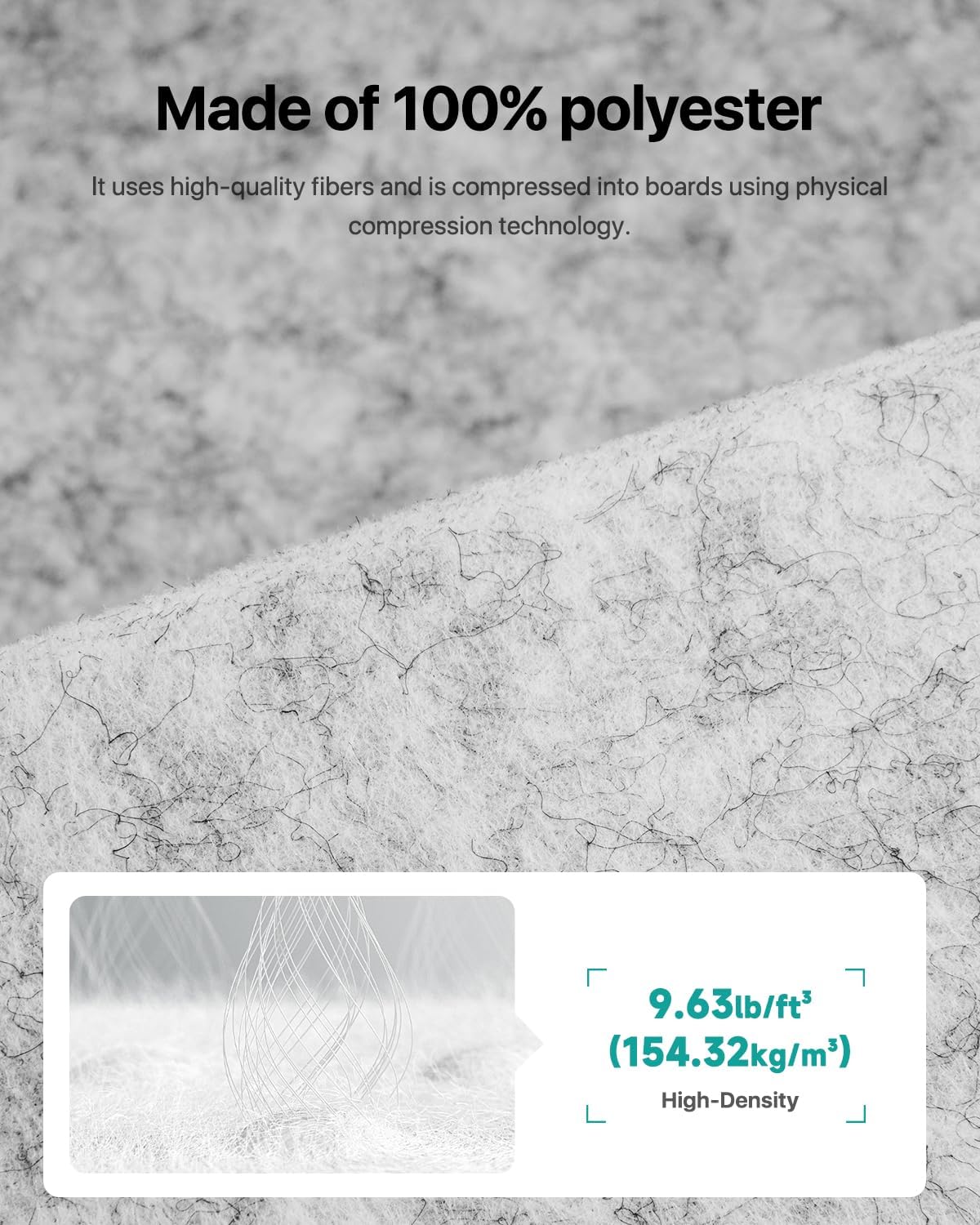 - High-Quality Material: Sound proof panels for walls made of 100% high-quality polyester fiber;soundproof foam panels are durable and wear-resistant