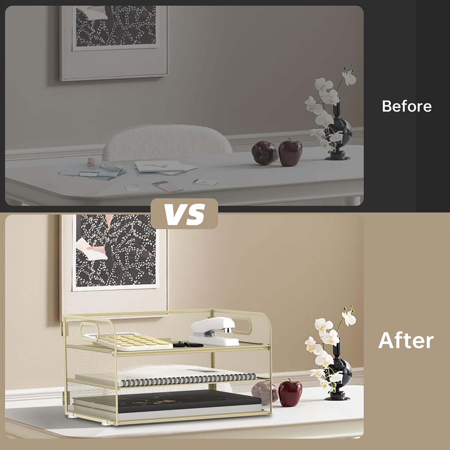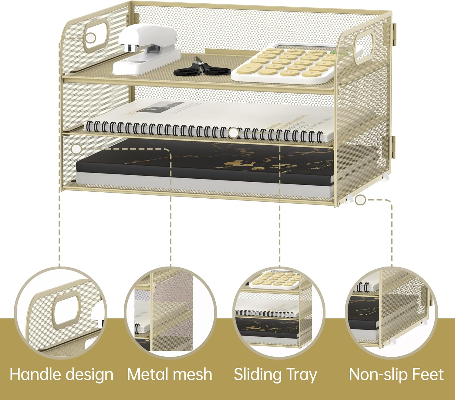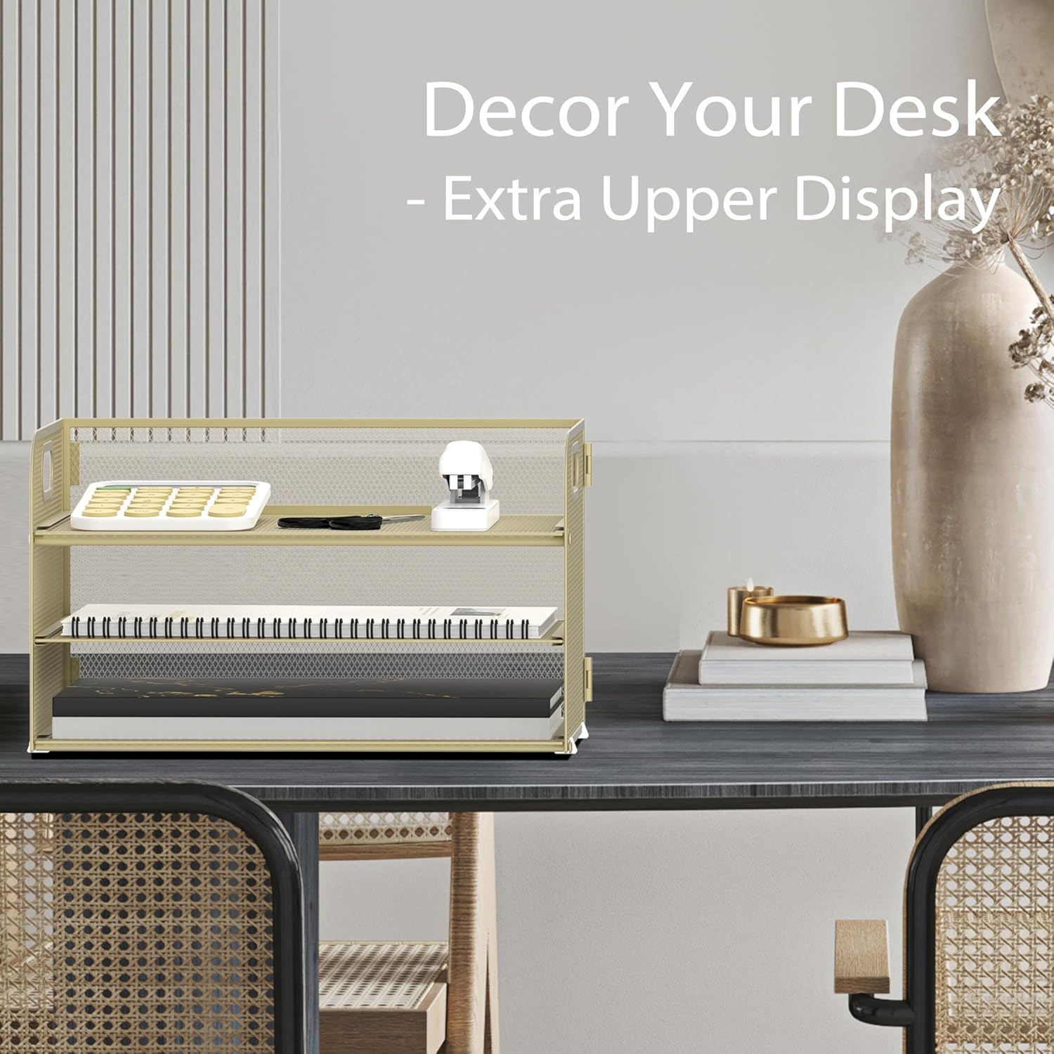 - [3 Tier Large Capacity] Upgraded SUPEASY desk organizer is 3 tier paper tray organizer. This paper organizer has 3 detachable trays which is perfect for holding letters, A4 paper, books, bills, magazines, mails, folders, notebooks and so on. The desk organizers can fully take advantage of your vertical space and keep your desktop clear and tidy.