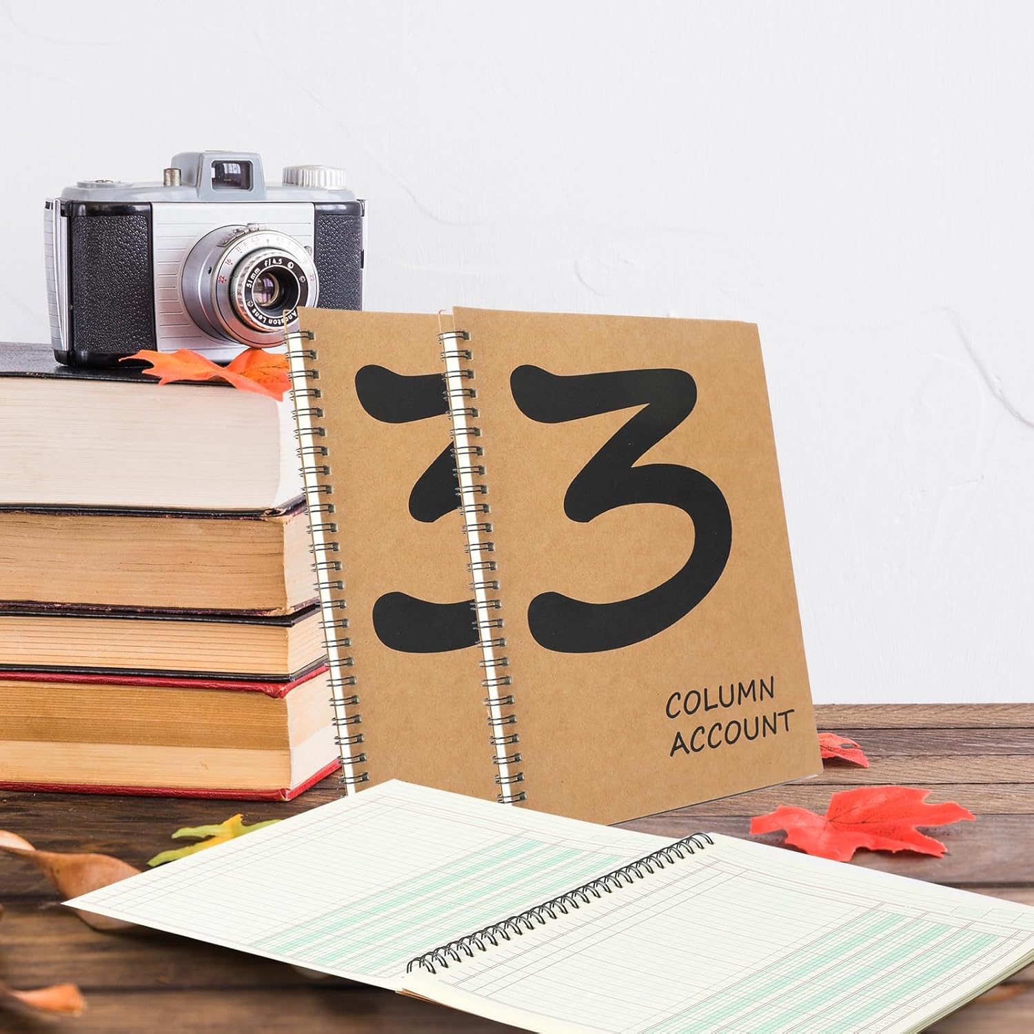 3 Pcs Accounting Ledger Book 3 Column 7 * 9.25inch Columnar Notebook Columnar Pad 3 Columns Kraft Paper Cover 100 Pages for Personal Use Small Business(50 Sheet)