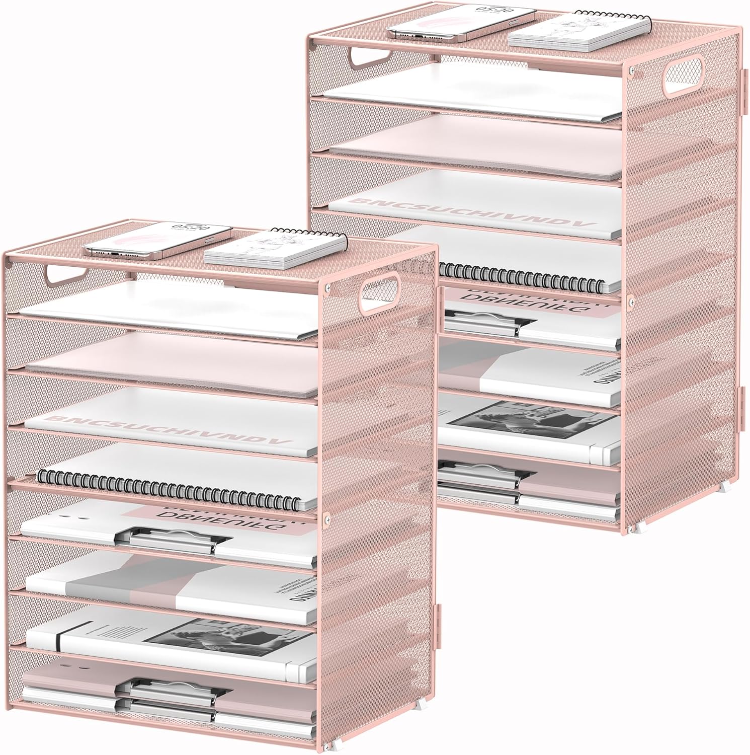 DALTACK 9-Tier Paper Letter Tray Desk Organizer with Handles, Mesh File Holder Organization, Paper Sorter Desk Organizer for Office Home School, Pink 2 Pack