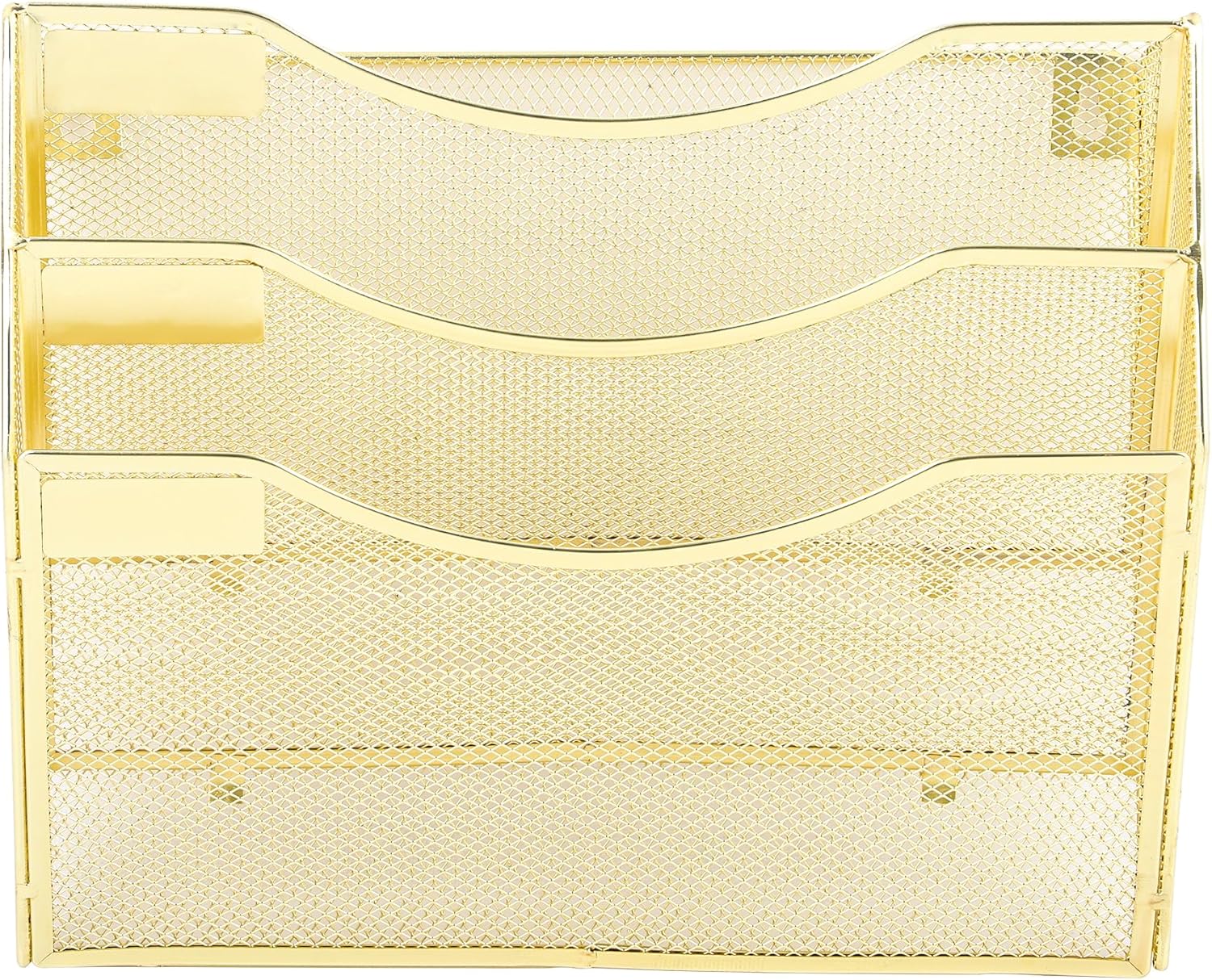 EASEPRES 3 Pocket Mesh Hanging Wall File Organizer, Wall Mounted Mail Paper Document Folder Holder, Clipboard Storage Organization Magazine Rack with Nametag Label for Office Home School, Gold
